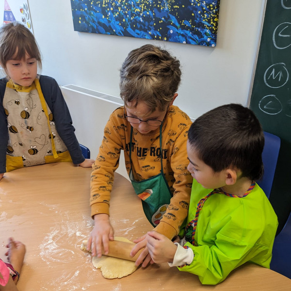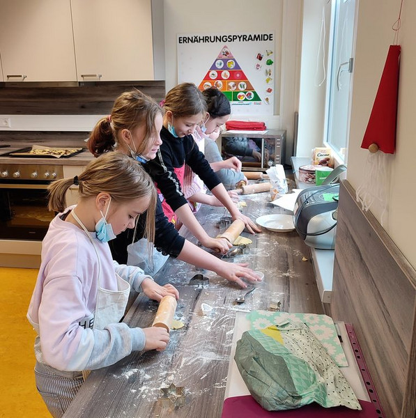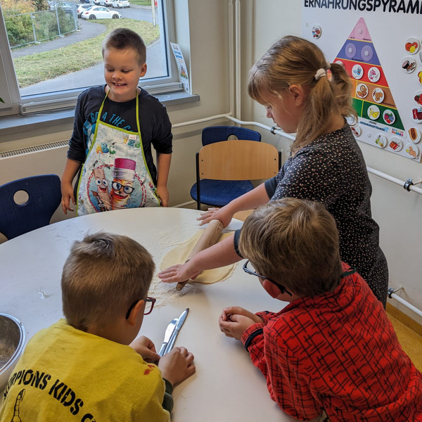 Außerdem haben alle Klassen in der Hortküche Martinsgänse oder Martinshörnchen gebacken. Das war ganz schön herausfordernd, weil sich die Kinder in Teams selbst den Teig nach einem Rezept herstellen mussten. Am Ende hat es aber jedem Kind geschmeckt.