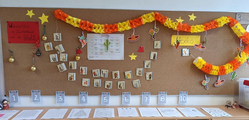 Seit dem 22. November erfüllt ein weihnachtlicher Hauch die 66. Grundschule sowie deren Außenstelle, die Schule Tauchaer Straße 188. Unter dem Motto "Weihnachten in aller Welt" lernen die Schülerinnen und Schüler die Weihnachtsbräuche und Traditionen verschiedenster Länder kennen. Jede Klasse hat sich dazu einem speziellem Land gewidmet. Es wird überall fleißig gebastelt, gesungen, gemalt, getanzt und sich auf jede erdenkliche kreative Art und Weise mit Weihnachten auseinander gesetzt.