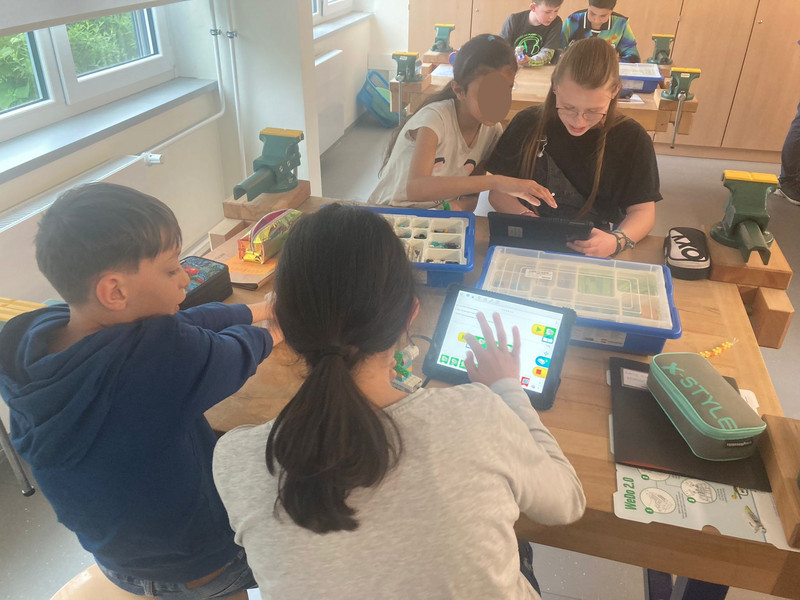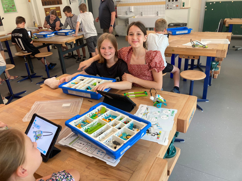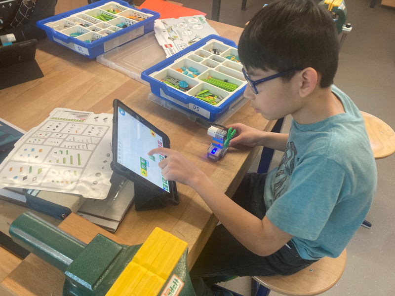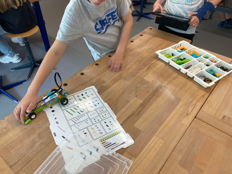 In der vierten Klasse werden aus den Kindern kleine Programmierer und Programmiererinnen. In Werken dürfen sie Roboter aus Legosteinen bauen und mit Hilfe einer App zum Leben erwecken. Die Roboter können sich bewegen, sich drehen, vorwärts und rückwärts fahren, die Farben wechseln oder sogar Bewegungen erkennen. So lernen die Kinder auf spielerische Weise erste Programmierkenntnisse. Die Robotikstunden in Werken waren für die Kinder ein richtiges Highlight am Ende der vierten Klasse und bleiben bestimmt lange in Erinnerung.