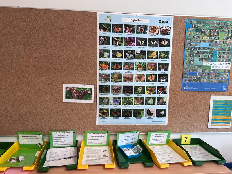 Hier ein Beispiel aus der Hasenklasse zum Thema Schmetterlinge. Nachdem die Schülerinnen und Schüler intensiv mit der Lerntheke gearbeitet haben, gab es einen Besuch im Schmetterlingshaus des Botanischen Gartens.