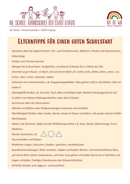 Das Staatsministerium für Kultus des Freistaates Sachsen hat auch einen sehr schönen Elternratgeber veröffentlicht, der viele Fragen rund um die Schulvorbereitung beantwortet.