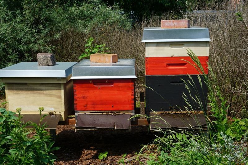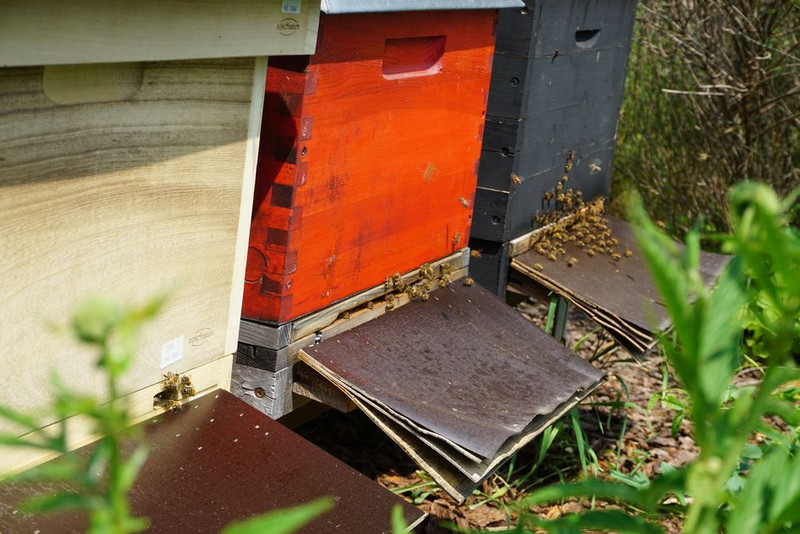 Wir sind stolz, unser Schulgelände mit mehreren Bienenvölkern teilen zu dürfen, die in drei Bienenstöcken etwas abseits des Hofes untergebracht sind.