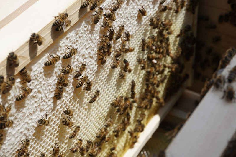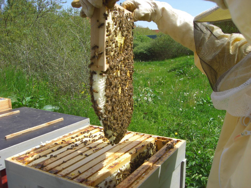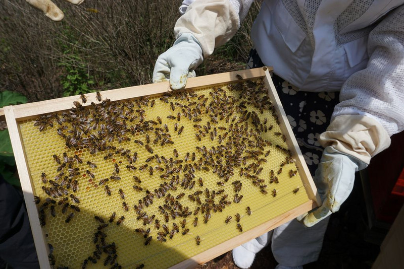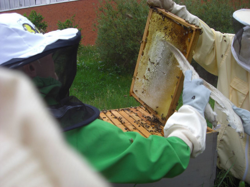 Die Bienenvölker werden von unserer Kollegin regelmäßig auf ihre Entwicklung hin kontrolliert.