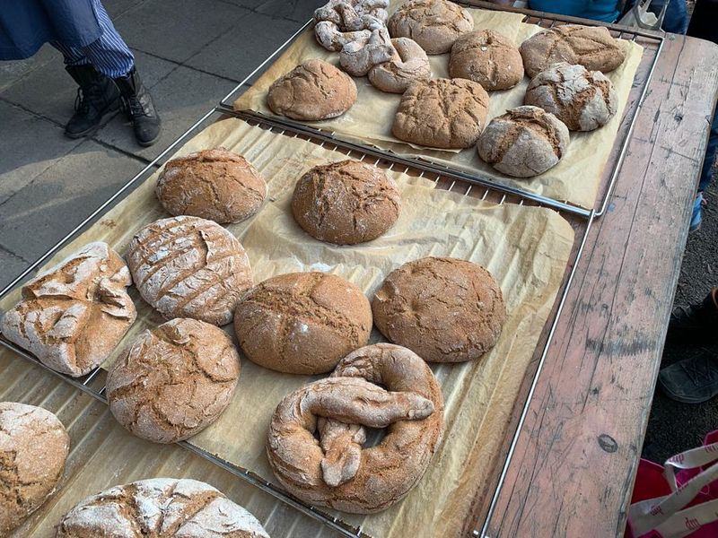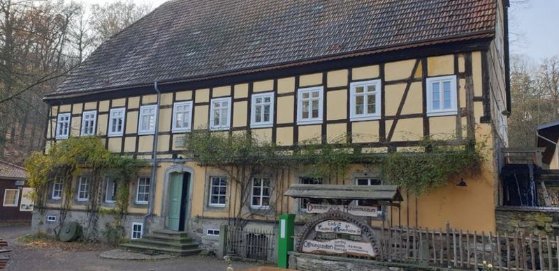 Wir fuhren ca. eine Stunde mit dem Bus. Zuerst liefen wir zu einer kleinen Aussicht. Danach kamen wir an der Mühle an. Die nette Müllersfrau bat uns herein und wir frühstückten erstmal. Anschließend erzählte sie uns etwas über den Anfang der Getreideverarbeitung. Dann gab sie uns ein Stück Teig, aus dem sich jeder seine eigene Form machen konnte. Unsere Hände wurden dabei ganz klebrig, so dass wir sie schrubben mussten (mit einer Bürste). Als Nächstes gingen wir zum Müller. Er erzählte uns die Geschichte über die Entstehung der Mühlen (die vier wichtigsten Arten sind: Hammer-, Säge,- Mehl- und Papiermühlen). Außerdem zeigte er uns das große Wasserrad (Durchmesser 6,20 Meter). Danach sahen wir uns die Mühlsteine im 1. Stock an und er zeigte uns wie alles funktionierte. Später aßen wir Mittag. Inzwischen war unser geformter Teig fertig. Wir konnten unser Gebackenes mit nach Hause nehmen und gingen an der Straße zurück. Es war ein sehr schöner Tag!