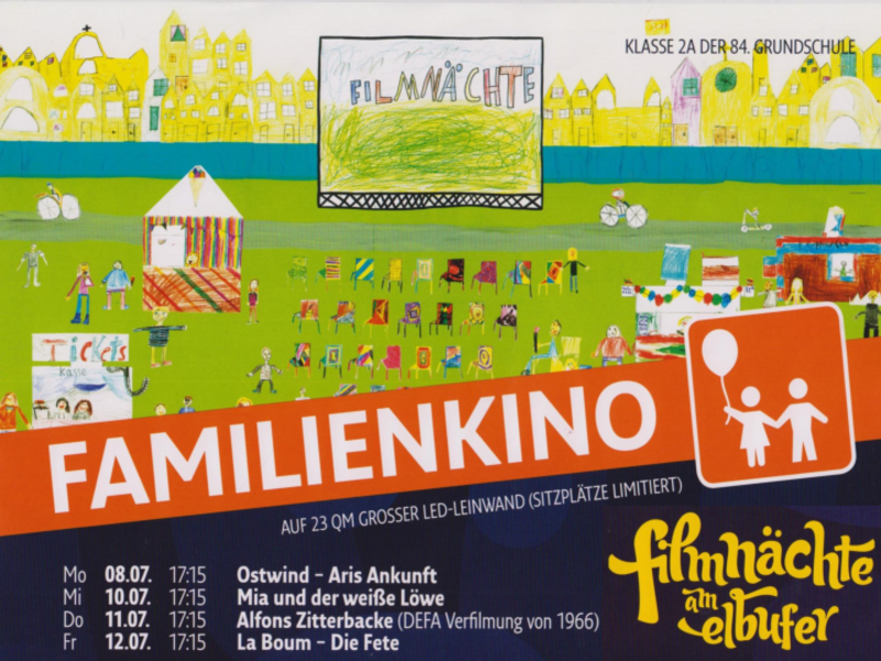 Die Klasse 2a hat an einem Wettbewerb teilgenommen. Wir gestalteten ein Plakat für das Elbkino. Alle Kinder bastelten, malten und klebten dafür sehr fleißig. Wir schrieben auch noch ein richtig tolles Gedicht (Rondell). Das hat sehr viel Spaß gemacht. Bald hörten wir die schöne Nachricht! Unser Plakat wurde für das Programm des Elbkinos ausgewählt. Wir freuten uns riesig. Nun können wir kostenlos eine Vorstellung besuchen und bekommen sogar noch Popcorn, was zu trinken und eine Überraschung. Überall in der Stadt hängen unsere Plakate. Die sind so groß wie eine ganze Tür. Wir sind sehr stolz.