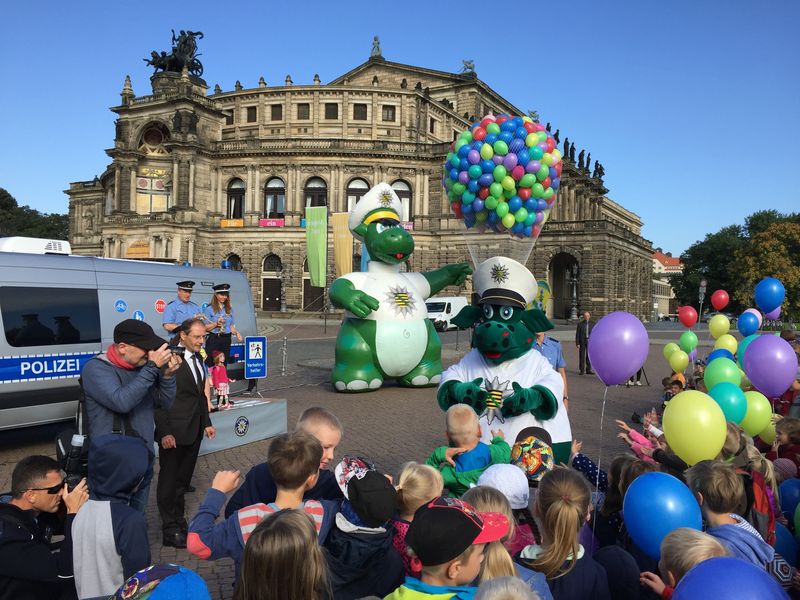 Am 11.08. machten sich unsere neuen ersten Klassen in Begleitung ihrer Patenklassen auf den Weg zum Theaterplatz, denn POLDI hatte zur Verkehrssicherheitskampagne "Die Schule hat begonnen" geladen.