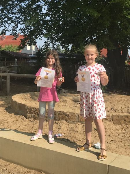 Am 1. Juni 2021 erwartete unsere Kinder eine besondere Überraschung. Nach den vielen Wochen des Fern- und Wechselunterrichts, in denen sie fleißig Bekanntes geübt, Neues gelernt hatten und immer am Ball geblieben waren, erhielt jeder Schüler und jede Schülerin eine Auszeichnung - die Auszeichnung für besonders starke Leistungen. Die Kinderaugen strahlten vor Stolz. Dazu gehörte natürlich auch eine Schokomedaille, die die Kinder sich gleich schmecken ließen.