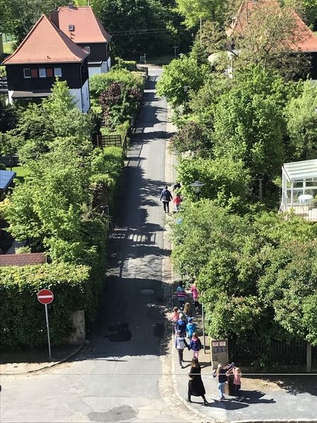 Doch der Tag brachte noch eine weitere Überraschung mit sich. Nachdem so viele Ausflüge leider coronabedingt nicht stattfinden konnten, verließen wir die Schule, um uns zu einem weiteren Highlight aufzumachen. Die Kinder rätselten, wohin uns der Weg wohl führen würde. Ob es der Gondler war oder doch der Heller? Vielleicht gingen wir auch zu den Hellerauer Werkstätten? Schließlich war die Freude groß, als wir am Schmidt's Halt machten und mit einem leckeren Eis begrüßt wurden.