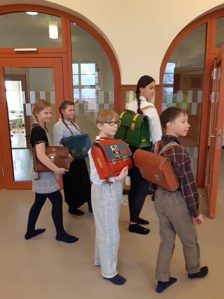 Am Montag hat unsere Klassenlehrerin Frau Liegert gesagt, dass wir am Donnerstag alle verkleidet in die Schule kommen können, weil wir das Thema „Schule früher und heute“ haben. Fast alle Schüler aus unserer Klasse, auch unsere Lehrerin und die Studentin, die bei uns gerade ein Praktikum macht, haben sich an diesem Tag altmodisch verkleidet. Wir sahen richtig gut aus.