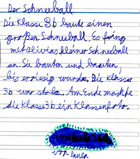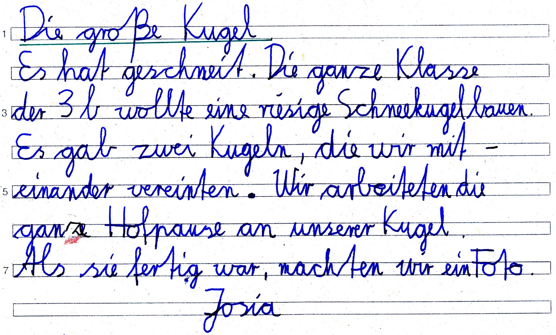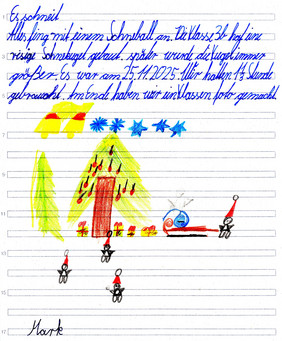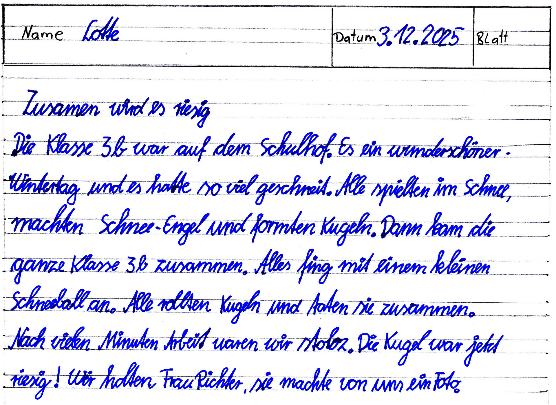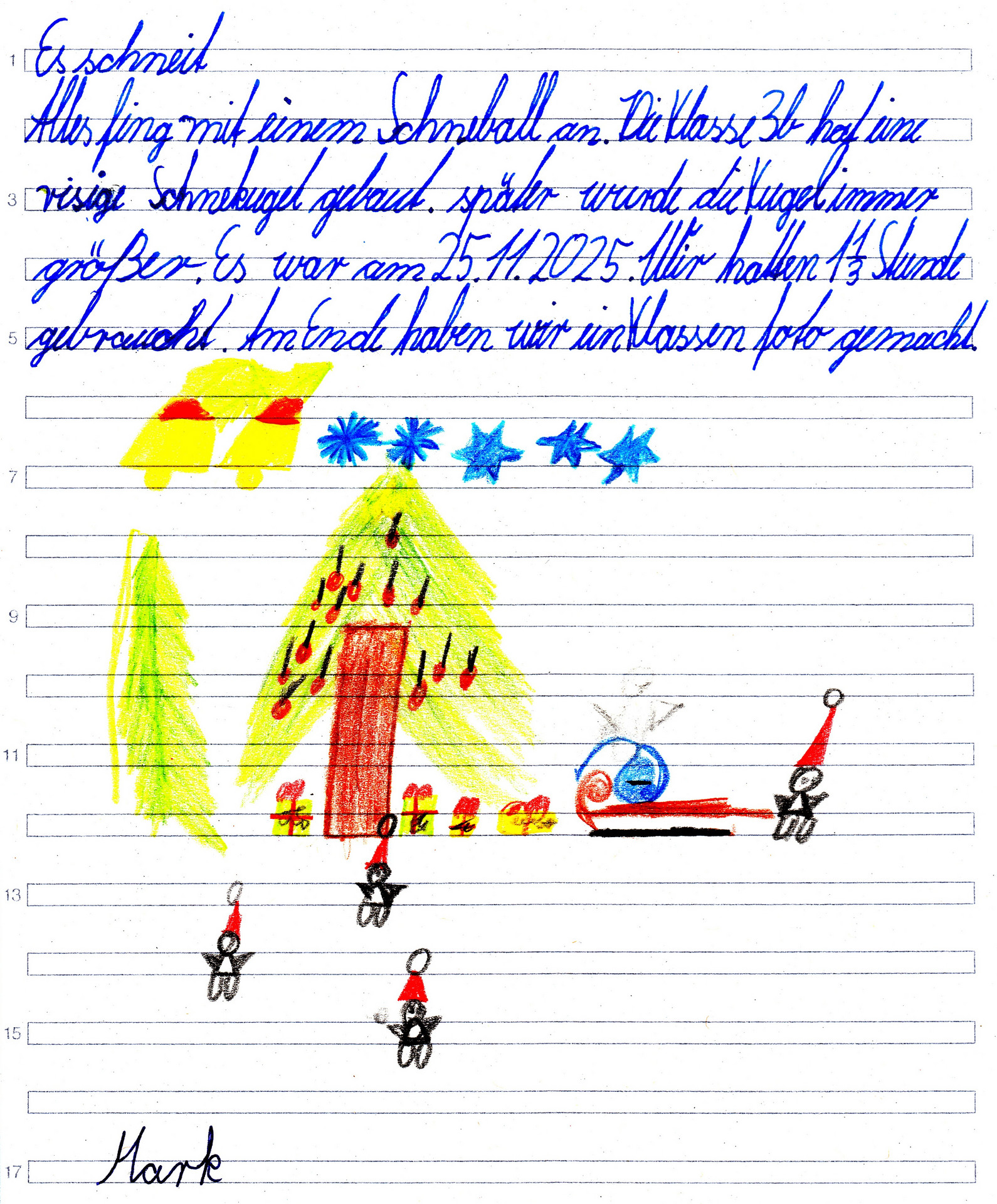 Was passiert, wenn ENDLICH der erste Schnee fällt? Die Klasse 3b berichtet im Deutschunterricht darüber.