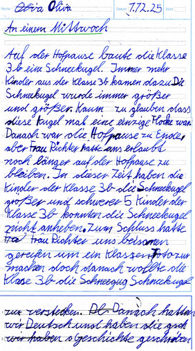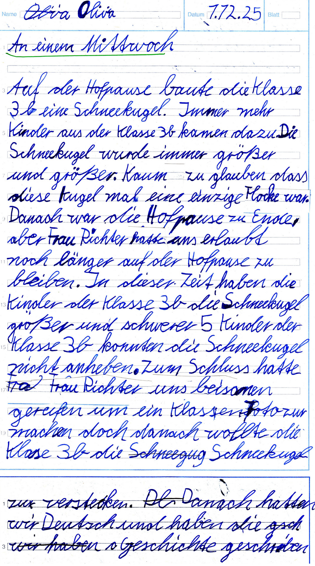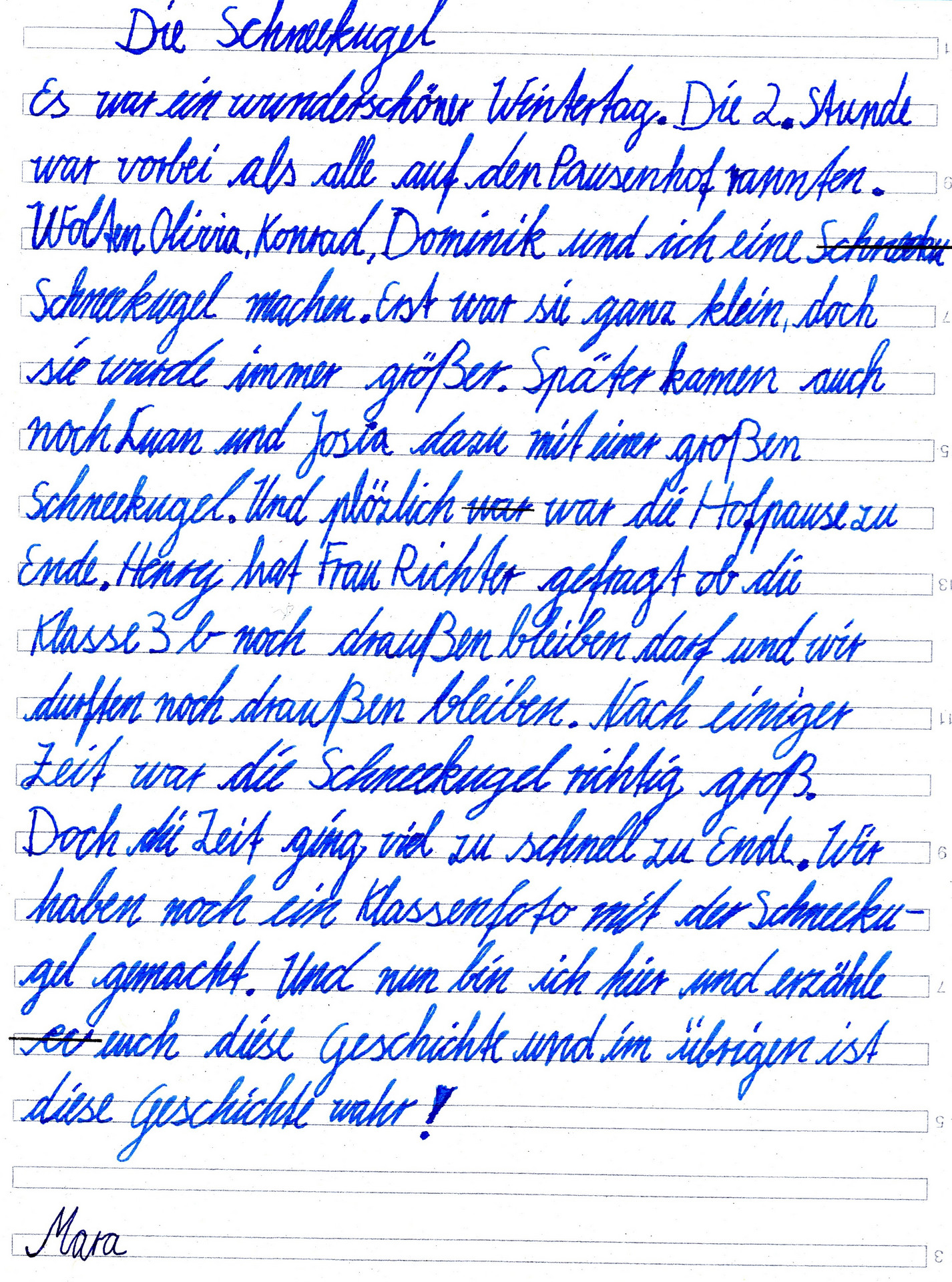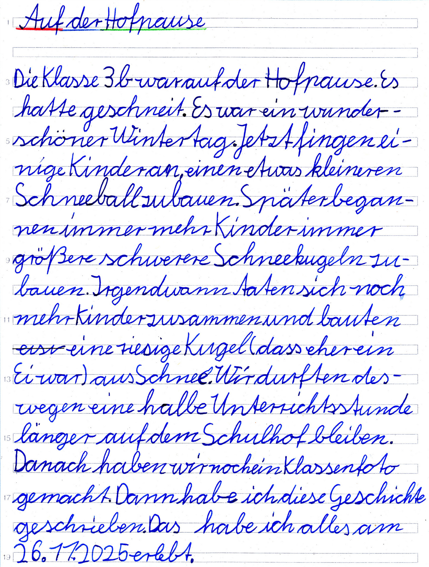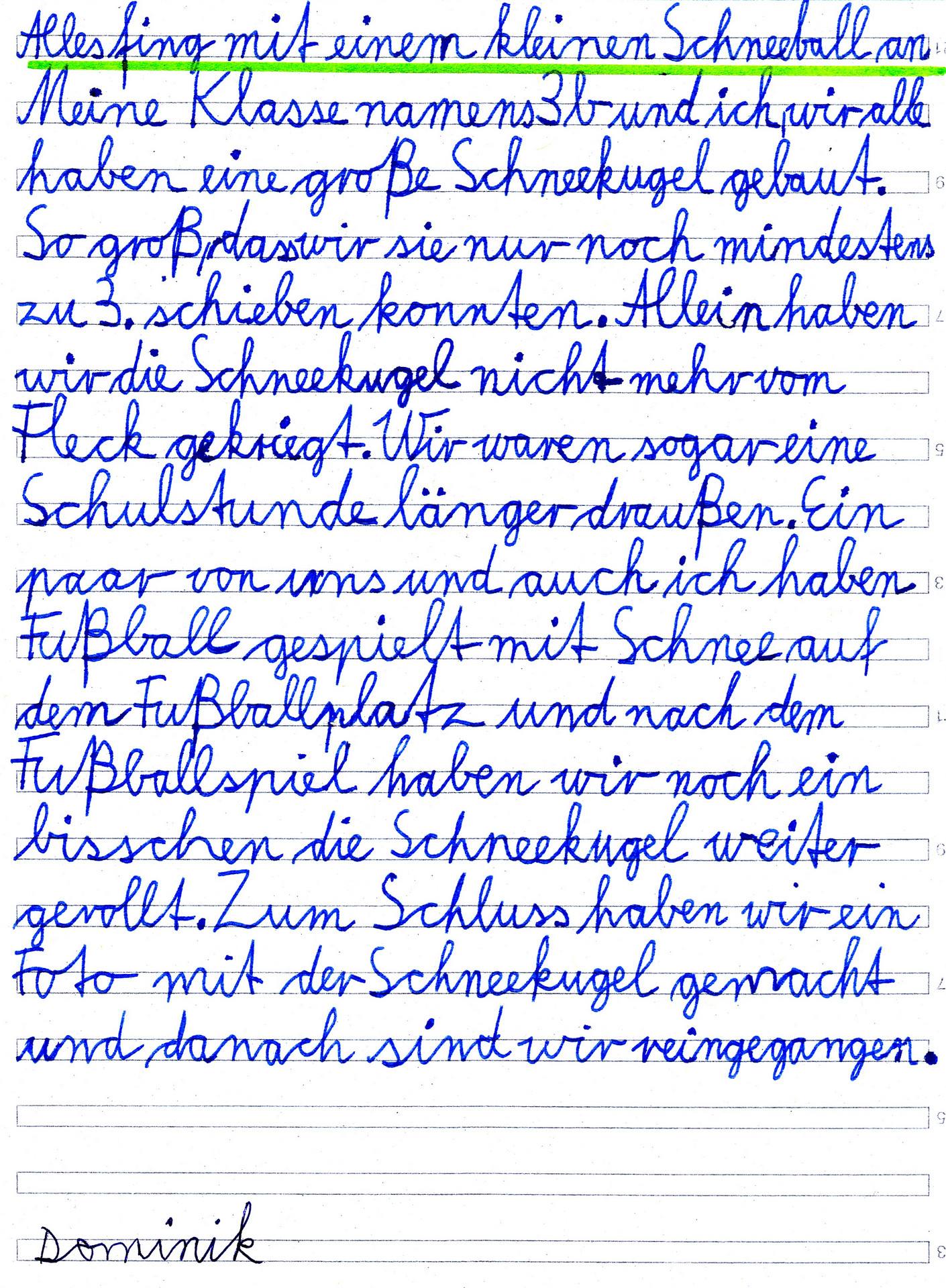 Was passiert, wenn ENDLICH der erste Schnee fällt? Die Klasse 3b berichtet im Deutschunterricht darüber.