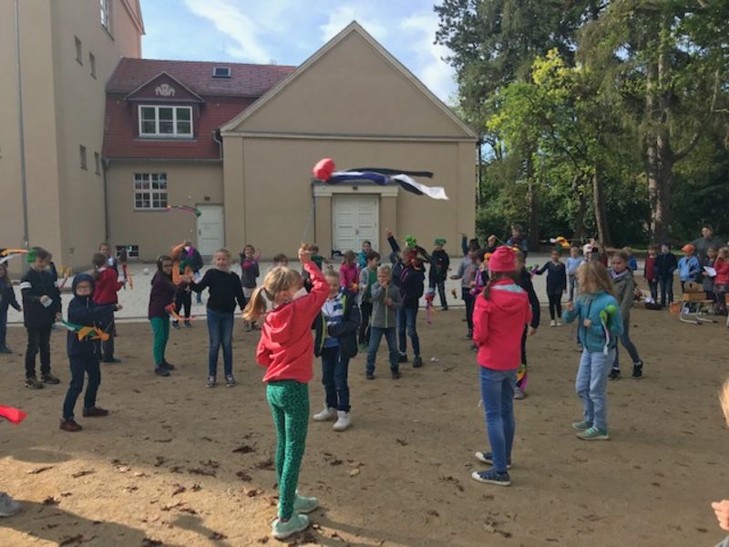 Alle Kinder trafen sich am 23.09.2021 auf dem Schulhof. Zuerst hat die 1a ein Theaterstück zu den Schwalben aufgeführt. Danach war die 1b dran. Sie haben ein Gedicht aufgesagt und dazu einen Rhythmus geklatscht. Die 2a hat ein Lied zum Theaterstück der 1a gesungen und auf zwei Xylofonen gespielt. Die 2b hat ein Lied mit Bildern vorgeführt. Wir haben zusammen mit der 3b ein Gedicht aufgesagt und danach "Wind, Wind, Wind, Wind, fröhlicher Gesell" vorgeführt. Dazu haben wir Windmacher gebaut. Die 4a hat danach ein Gedicht angesagt und mit Bildern und Blättern verschönert. Am Ende hat die 4b noch ein selbstgeschriebenes und komponiertes Lied vorgesungen.
