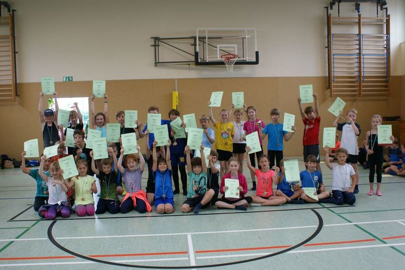 Unsere Schulkinder freuten sich riesig auf das Sportfest am 29.06.2022. Das Wetter spielte fantastisch mit und schenkte unseren Sportlern einen kühleren Sommertag, der das Sporteln leichter machte. Beim 60-Meter-Lauf, beim Weitwurf und Weitsprung, beim Crosslauf um den Gondler und dem Staffellauf holten alle Höchstleistungen aus sich heraus. Am Mittag wurden die Anstrengungen mit Medaillen belohnt. Manchmal war es ziemlich knapp und das Treppchen wurde verpasst. Seid darüber nicht traurig! Im nächsten Jahr gibt es die nächsten Chancen!