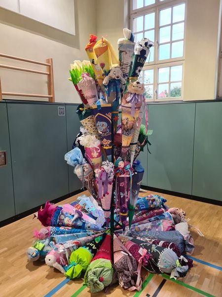 Neugierige Kinderaugen, aufgeregte Eltern und Großeltern und ein Zuckertütenbaum - am 27.08.2022 konnten wir unsere neuen ersten Klassen begrüßen. Aufgeregt folgten die stolzen ABC-Schützen ihren Klassenlehrerinnen Frau Gilian und Frau Schlegel ins Klassenzimmer. Nach einer Begrüßung durch die Schulleiterin Frau Hartmann führten die vierten Klassen ein tolles Programm auf, das mit DEM Höhepunkt endete: den Zuckertüten.