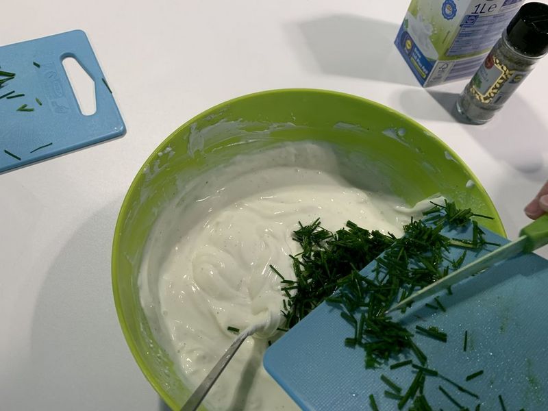 - einen Kräuterquark zum Dippen zubereiten