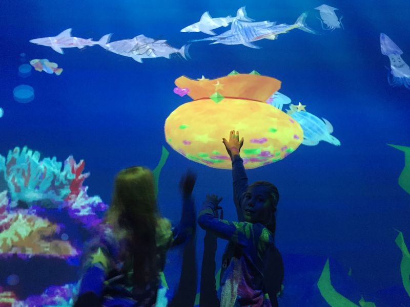 In die Kunst eintauchen, selbst kreativ werden und Kunstwerke mitgestalten – all dies probierten die Schülerinnen und Schüler begeistert aus. Sie schufen Kunstwerke mit farbigen Eiswürfeln, experimentierten mit optischen Täuschungen und staunten über Projektionen, deren Verlauf sie selbst beeinflussen konnten.