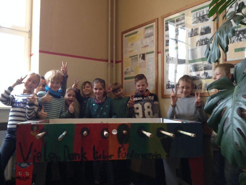 Der Förderverein der Schule schenkte unseren Kindern einen Tischkicker aus Pappe! Mit dem kann man wunderbar spielen, aber er sah uns zu langweilig aus! Deshalb wurden im Hort Pinsel und Farbe in die Hand genommen und im Nu hatten wir ein neues und nun richtig cooles Spielgerät. Vielen Dank, lieber Förderverein!