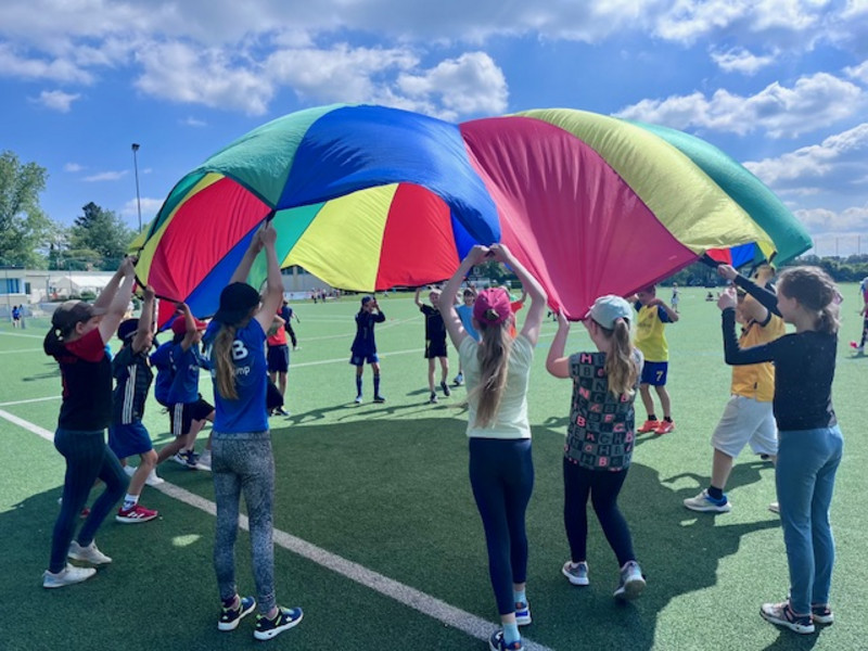 Bei bestem Wettkampfwetter fand am 6.6.2024 unser Sportfest statt. In den Disziplinen 50-Meter-Sprint, Schlagballweitwurf, Ausdauerlauf und Weitsprung kämpften unsere kleinen Sportler und Sportlerinnen um die begehrten Podestplätze. Viel Spaß hatten unsere Kinder auch beim Staffellauf und den Sportspielen in den Pausen.