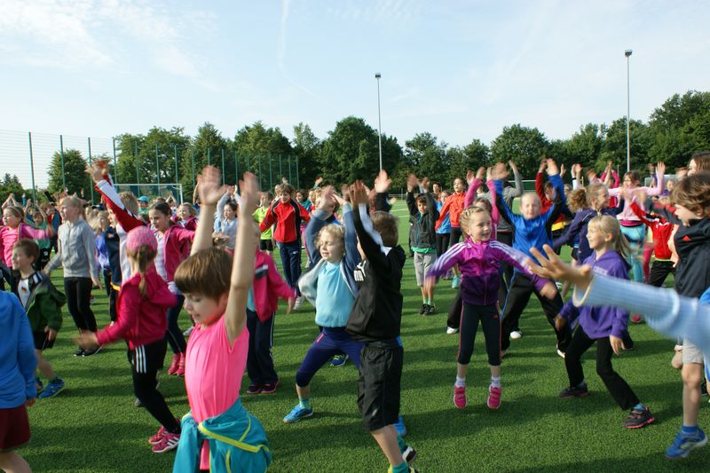 Bei strahlendem Sonnenschein fand am Donnerstag (25.06.2015) unser Sportfest statt. Mit einem kräftigen "Sport frei" begrüßten sich alle, um in diesen Wettkampftag zu starten. Doch bevor dieser so richtig begann, staunten alle über die zwei tollen Aufführungen der Gymnastik-AG.