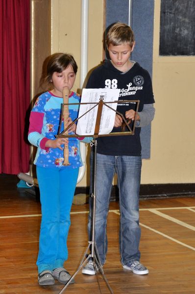 Mit "Kommet, ihr Hirten" versuchte die Klasse 4a den Heiligabend schneller näher rücken zu lassen. Anschließend lauschten wir den Stücken "Kling Glöckchen" vorgetragen auf der Blockflöte, "Jingle Bells" gespielt auf der Gitarre, "Wir sagen Euch den lieben Advent" auf der Klarinette und dem Violinenstück "Es ist ein Ros' entsprungen". Das manchmal aus mehr auch nichts werden kann, trug uns die Klasse 4a mit dem Gedicht "Der kleine Nimmersatt" von Heinrich Seidel vor.