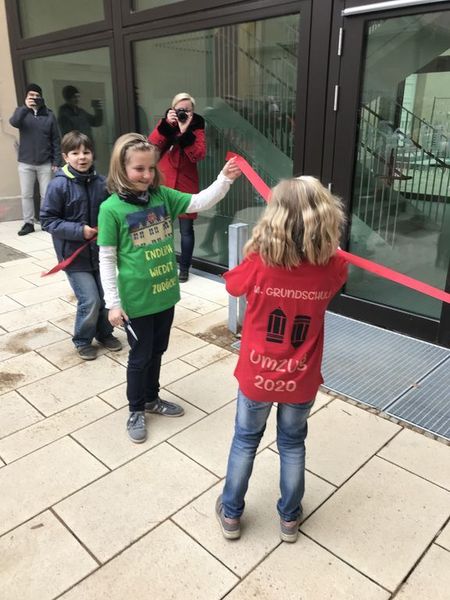 Am 24.02.2020 begannen wir das 2. Schulhalbjahr im neuen Schulgebäude auf dem Heinrich-Tessenow-Weg. Viele von uns Schülern waren so aufgeregt, dass sie schon lange vor der Anfangszeit auf dem neuen kleinen Campus warteten. Als sich kurz vor 8.00 Uhr endlich die Türen öffneten, sangen wir voll Vorfreude „Neue Schule, altes Haus, du siehst heut` ganz anders aus…“ und wie bei einer richtigen Eröffnung wurde ein rotes Band durchschnitten. Der erste Stunden-Gong führte uns dann endlich ins Innere unserer neuen Schule! Wir kamen aus dem Staunen nicht mehr heraus! Wie schön neu alles aussieht! Wir freuen uns über reichlich Platz, die modern eingerichteten Klassenzimmer und die wunderschönen Horträume. Und so richtig toll finden wir, dass die alte Hellerauer Feuerwehr nun unser Essensaal ist!