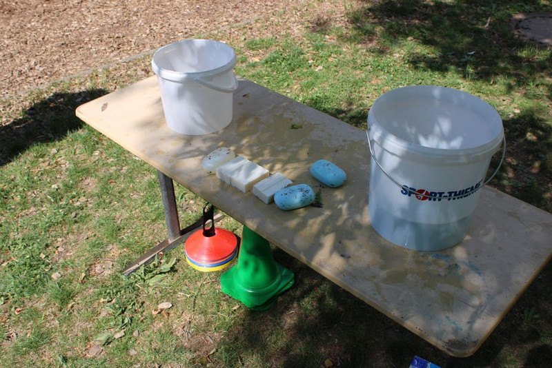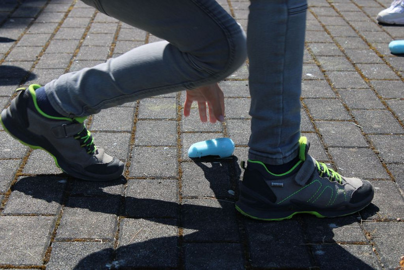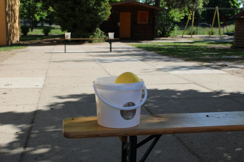 Wasserwoche wird eröffnet mit dem Aufbau der Wasserbahn mit Bällen.