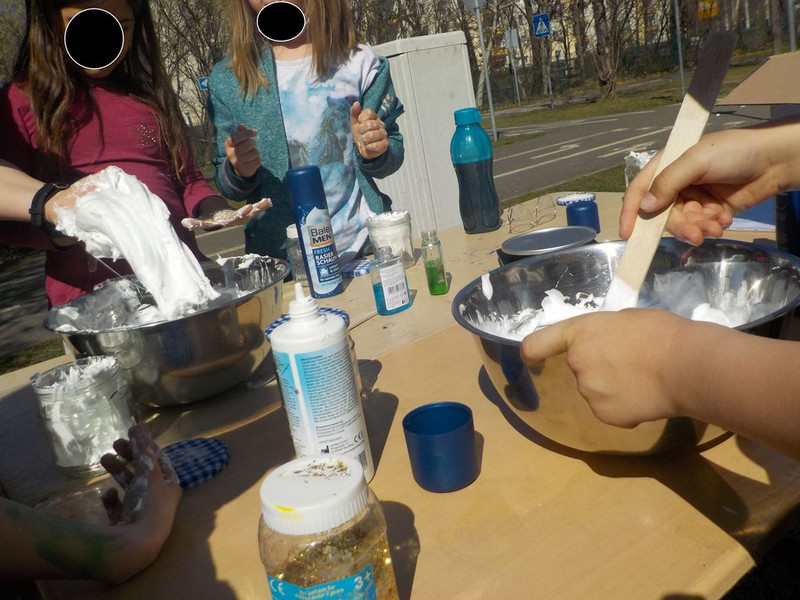 Kreativangebot --> Schleim herstellen oder Töpfern in der Töpferwerkstatt.