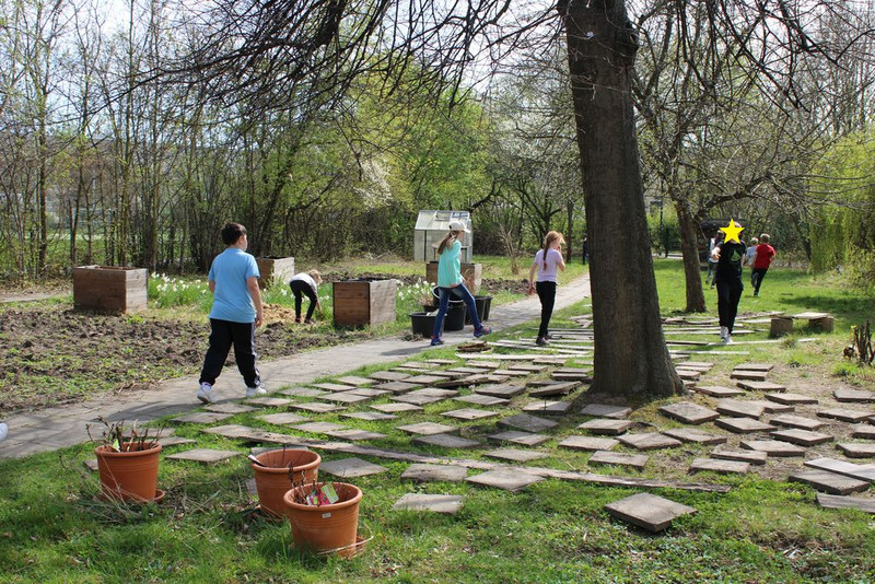"Steinmetzarbeiten" und Bepflanzung im Schulgarten