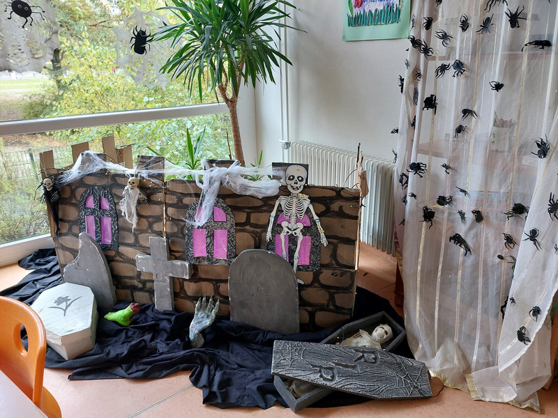 Es gab eine Gespensterdisco, eine begehbare Geisterbahn, ein Gruselkabinett und eine gruseligen Bewegungsstrecke in der Turnhalle.
