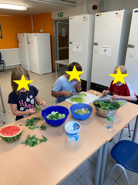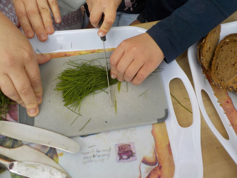 Schulgarten"früchte" werden geerntet, zubereitet und gekocht.