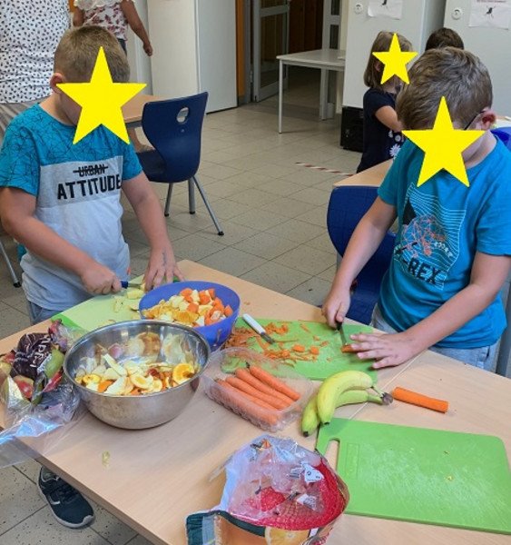 Backen, wir verarbeiten die Früchte des Schulgartens.