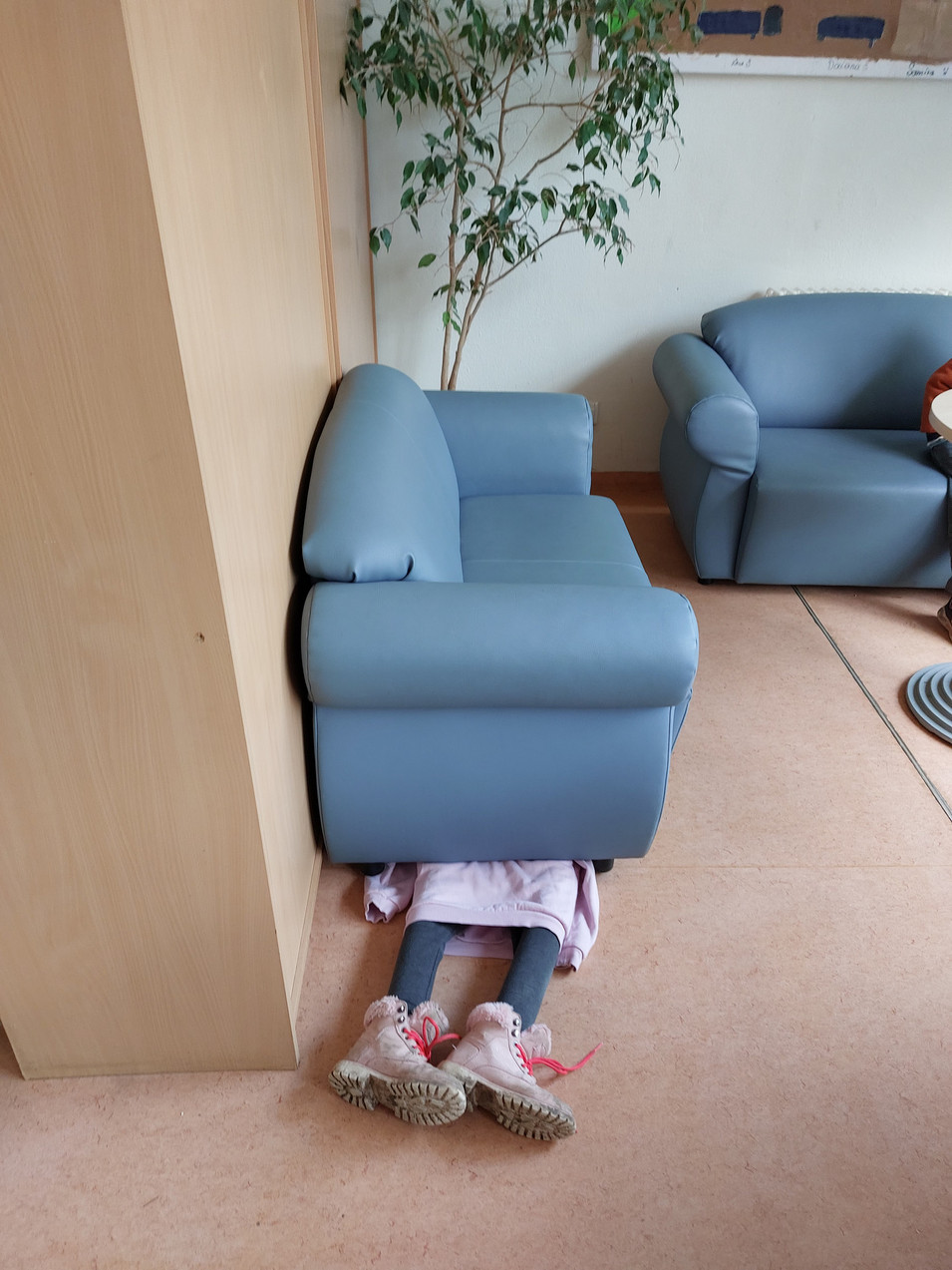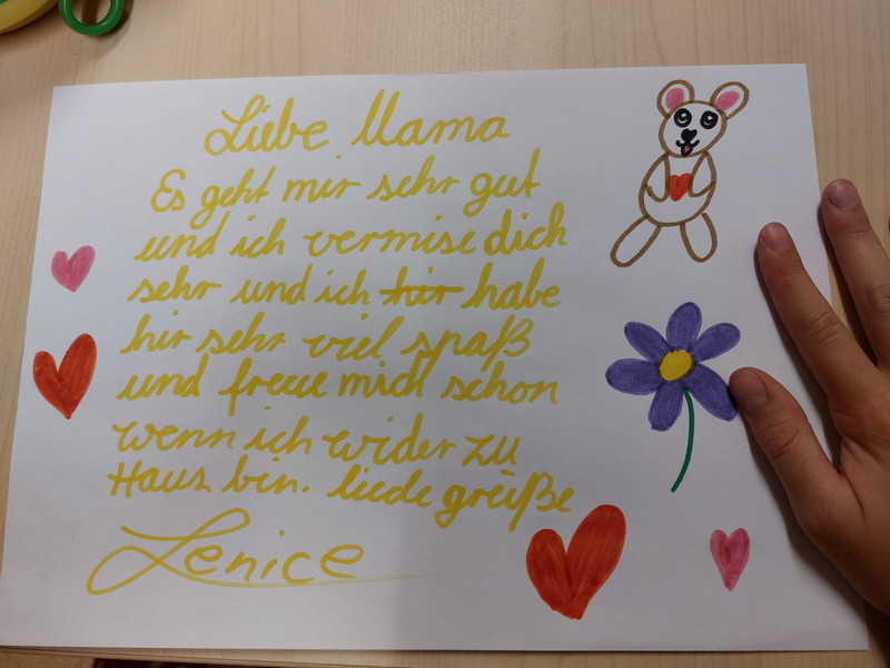 Heute regnet es leider, aber wir können auf den Zimmern gut spielen, haben eine kleine Turnhalle mit Kicker- und Tischtennistisch.