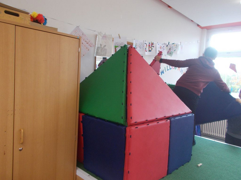 Wir beginnen den Regentag sportlich mit 2-Felder-Ball und Fußball in der Turnhalle.