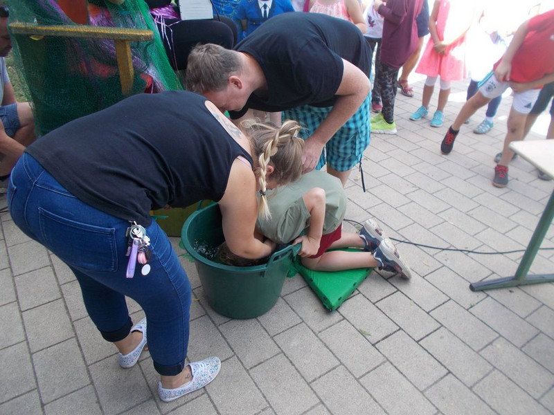 Die 6. Ferienwoche steht unter dem Motto -Neptunfest-. Alle Ferienkinder und auch die Erzieher*innen freuen sich, dass Neptun persönlich oder aber seine Meeresgattin Ursula am Mittwoch, den 26.08.2020 zu uns in den Hort kommt. Um Neptun bzw. Ursula gebührend zu empfangen, haben wir gebastelt, gebacken, geschmückt und viele Wasserspiele vorbereitet. Schon am Morgen schminken wir uns und verkleiden uns ein wenig. Um die Ankunft von Neptun (ca. 11 Uhr) kurzweilig zu verbringen, haben wir verschiedene Wasserstationen mit Wett- und Spaßspielen und anderes vorbereitet.