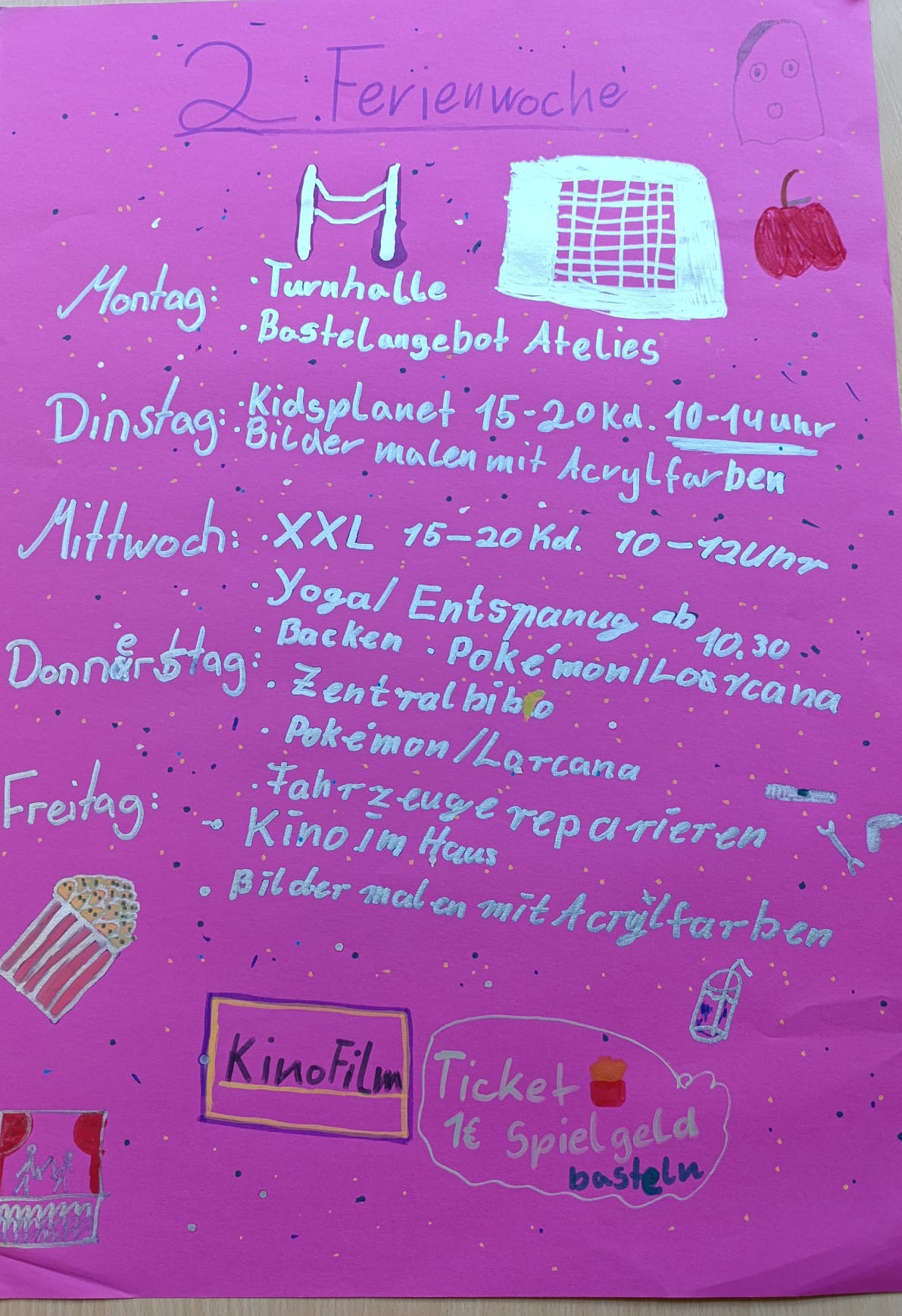 Die Gesundheit der Kinder sowie die der pädagogischen Fachkräfte hat für uns oberste Priorität. Aus diesem Grund bitten wir um Verständnis, das es in unserem Ferienangebot zu Einschränkungen kommt. Die geplante Landschulheimfahrt musste leider abgesagt werden. Aber trotz allem stellen wir immer Montags mit den Kindern ein spannendes Wochenprogramm zusammen. Dieses Programm stellen wir Ihnen dann auf dieser Seite vor.