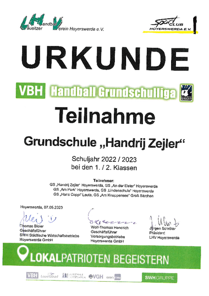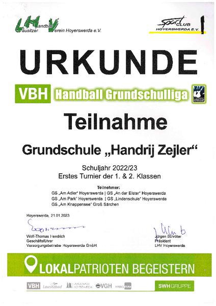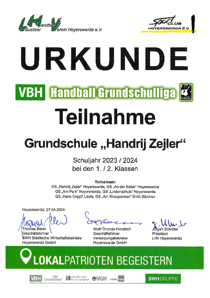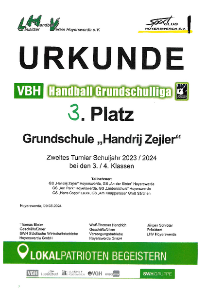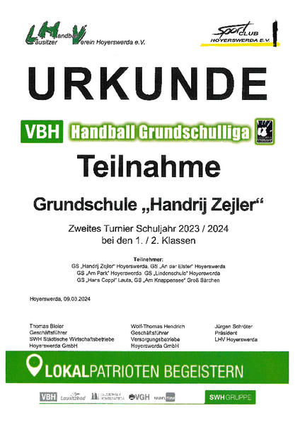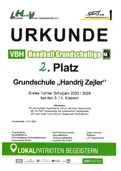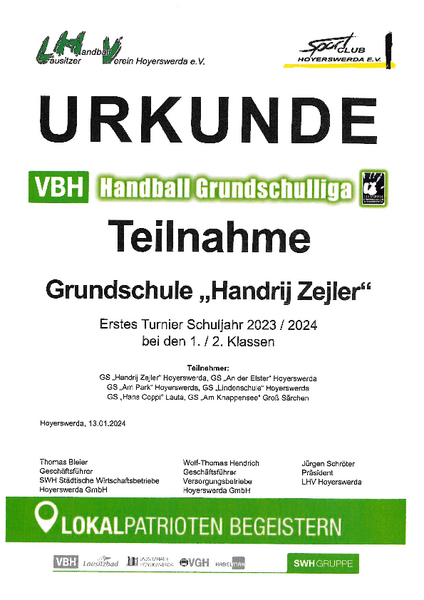Wir bedanken uns bei der Lausitzer Seenland Stiftung, der VBH, der VGH, dem Stadtsportbund und