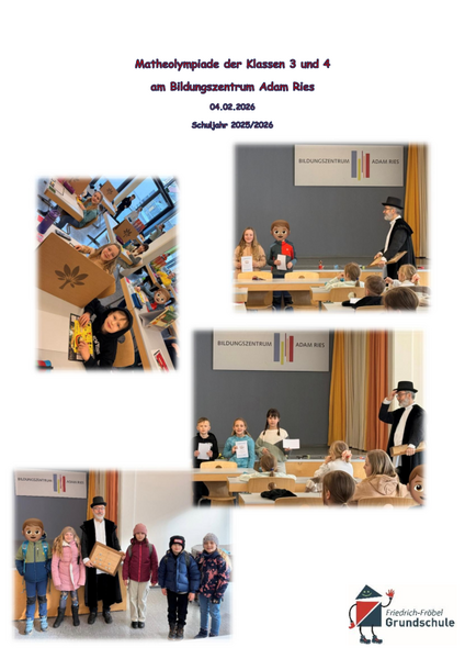 Am 30. Januar fand die zweite Runde der Mathematik-Olympiade statt. Dafür haben sich vier Kinder der Klassen 3 und 4 qualifiziert: Rosina aus der Klasse 3b, Johanna aus der Klasse 4a, Milli und Joleen aus der Klasse 4b.