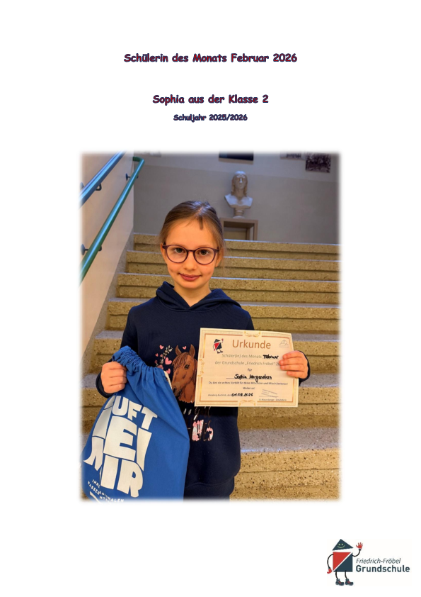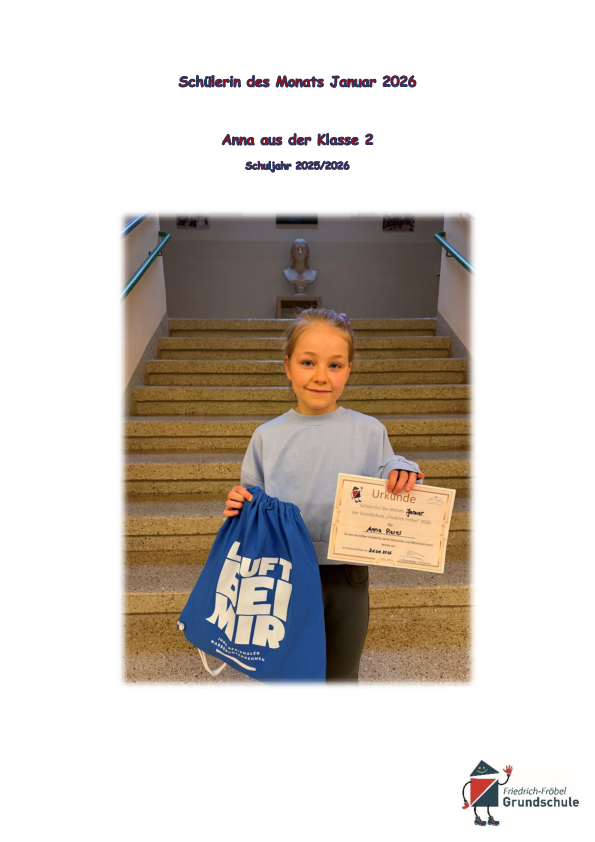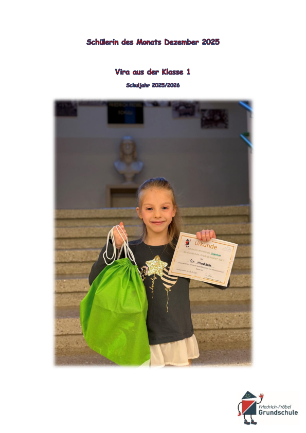 Zur Schülerin des Monats Januar 2024 wurde von den Klassensprechern und Lehrern Rosina aus Klasse 3b gewählt!