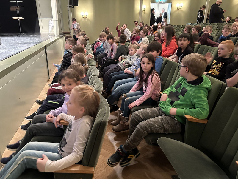 Die Klasse 2a startete zu ihrem Aulatreff am 06.02. mit dem Gedicht vom Schlittenfahren Einige Mädchen tanzten danach zu dem Lied "Feuerwerk", es durfte über Witze gelacht werden und wir hörten ein Musikstück, gespielt auf der Melodika. Frau Lindenborn kündigte auch an, dass ein Film für das Märchenfestival fabulix in der Schule gedreht wird. Außerdem wurde den Teilnehmern der Mathe-Olympiade Stufe 2, dem Gewinner des Malwettbewerbs und unseren täglichen Helfern und Assistenten gedankt. Gemeinsam wurde auch ein Geburtstagslied für unsere Geburtstagskinder gesungen und ein Abschlusslied mit dem Chor.