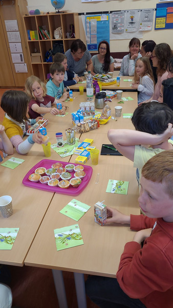 Am 27. Juni verabschiedeten sich die 4er mit einem Programm in der Aula von der Grundschule gemeinsam mit Eltern, Großeltern und Geschwistern. Im Anschluss wurde für die Kinder der 4b ein emotionales und aufregendes Fest von den Elternsprechern organisiert. Alle hatten viel Spaß und am Ende wurde getanzt und viel gelacht. So sollte ein Abschluss sein.