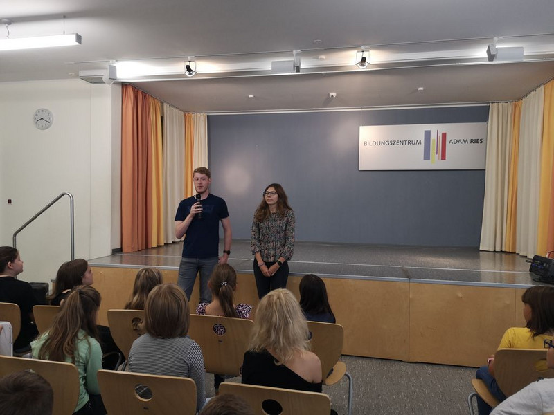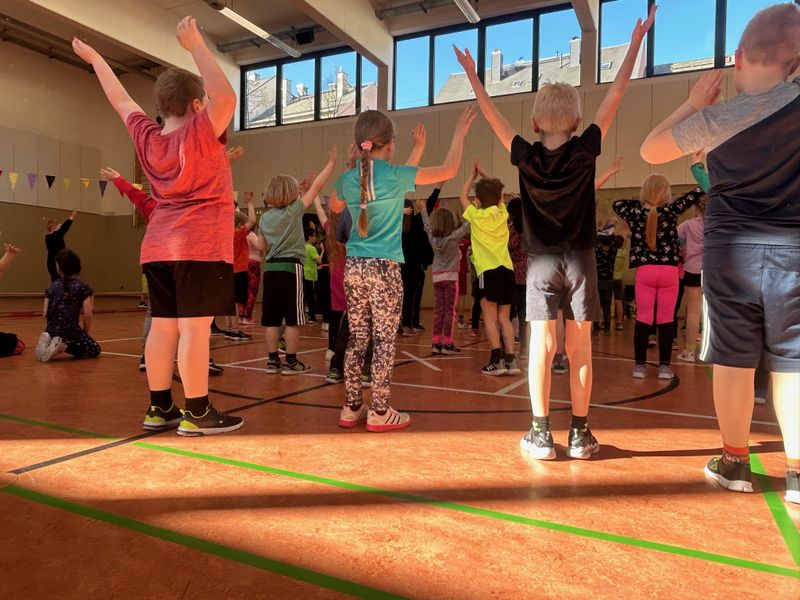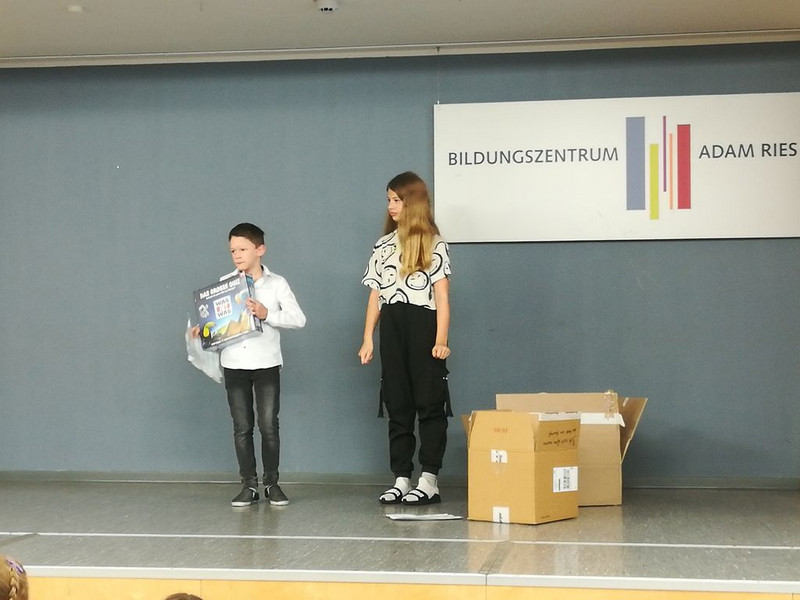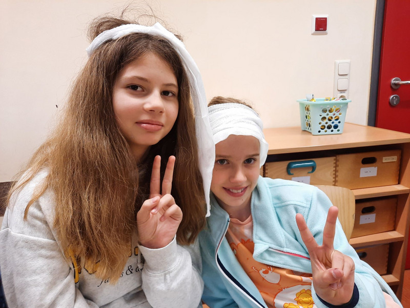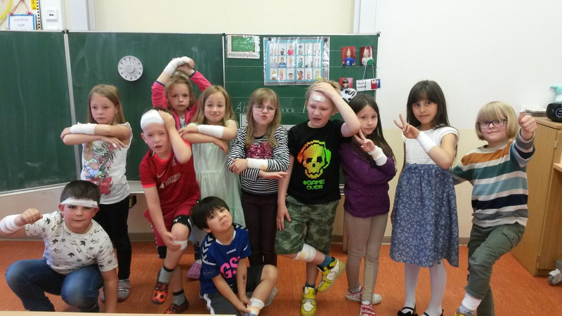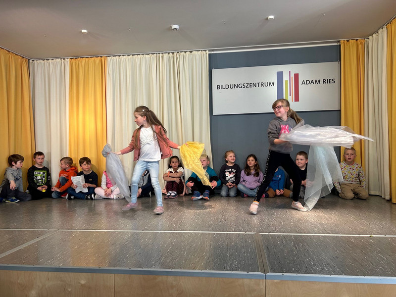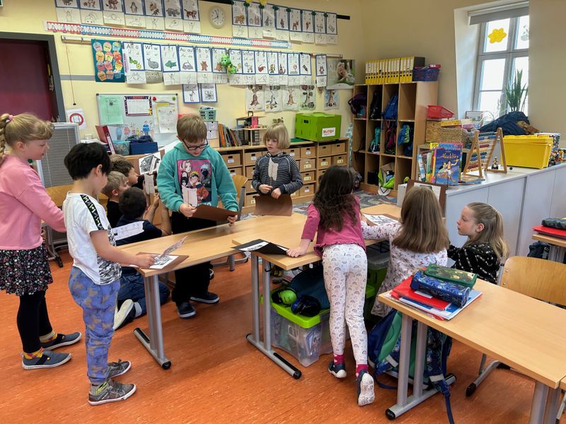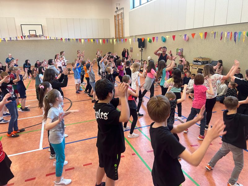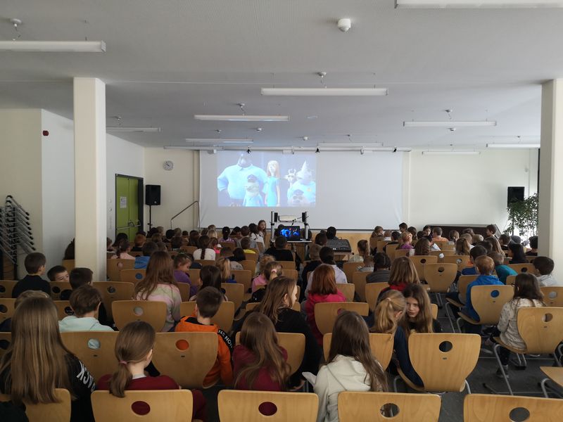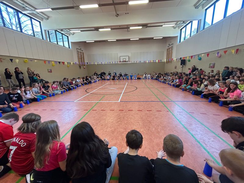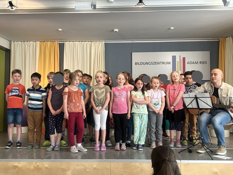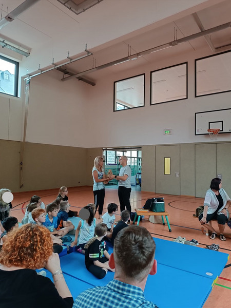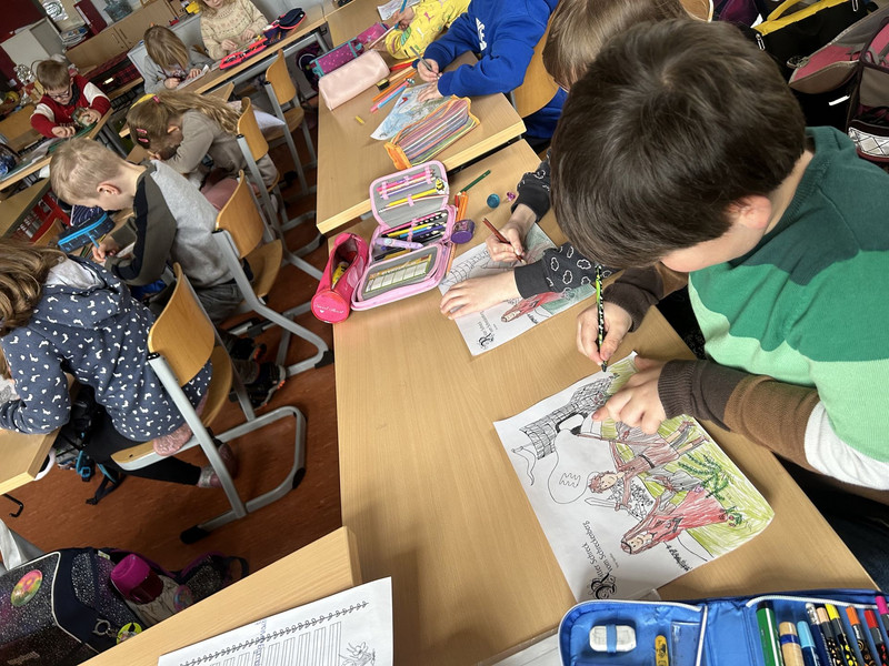 Am ersten Schultag nach den Osterferien begrüßten wir gemeinsam in der Aula alle ukrainischen Schülerinnen und Schüler. Dazu sang der Chor einstudierte Lieder, alle Lehrer stellten sich noch einmal vor und die Drittklässler hielten extra eine kleine Begrüßungsrede. Ab sofort nehmen die ukrainischen Kinder mindestens einen Tag in der Woche am regulären Unterricht teil und lernen die Klasse kennen. Außerdem werden sie auch in den Fächern Sport, Werken, Kunst und Englisch mit uns gemeinsam lernen.