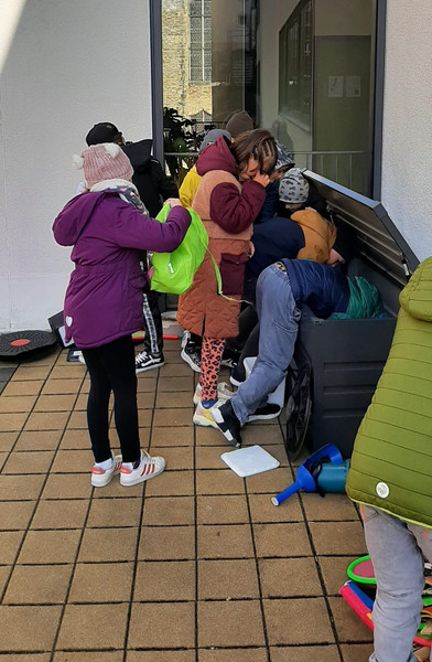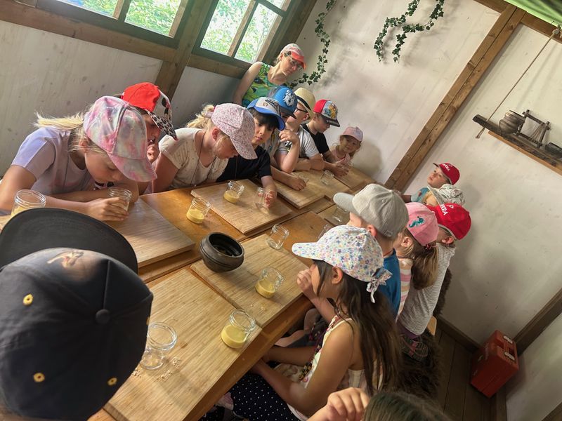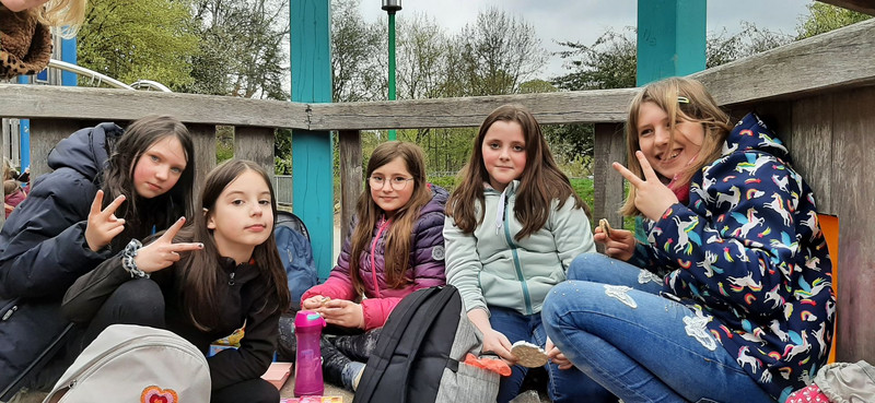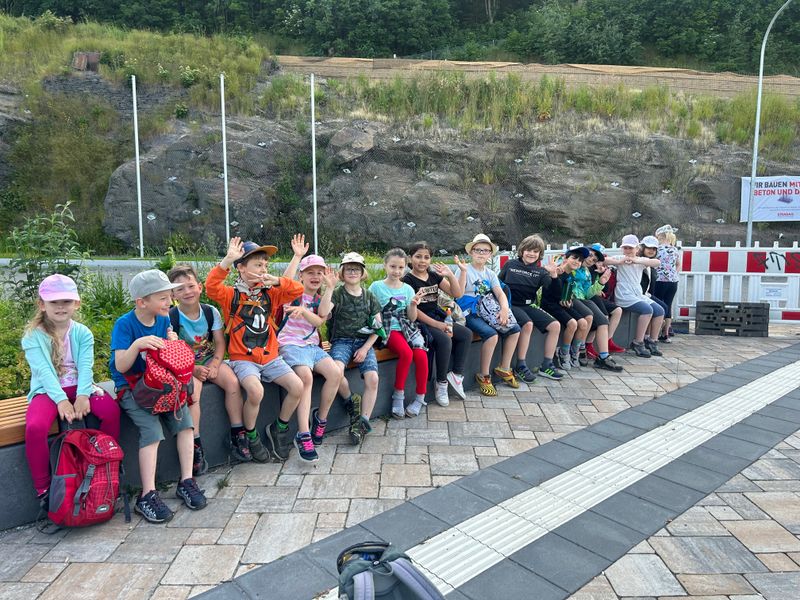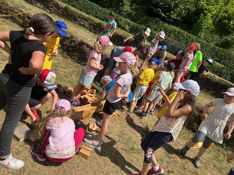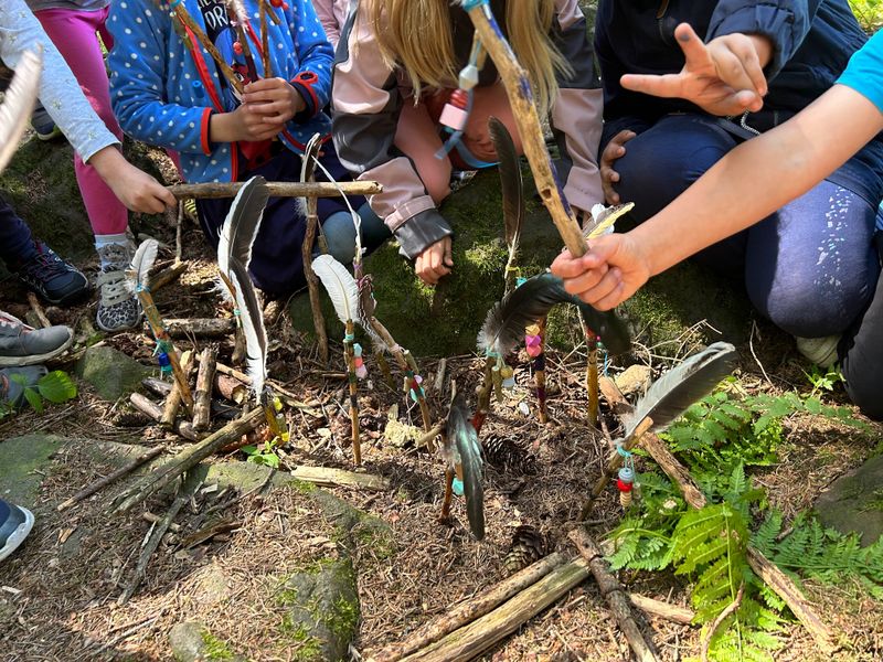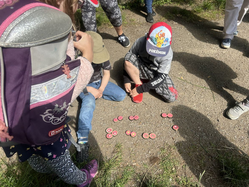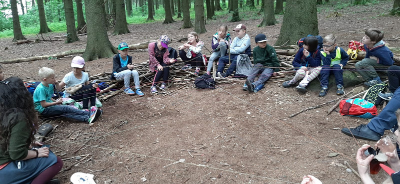 Vom 12. - 16.06.2023 fand die Waldwoche der Klasse 1a statt. Die Schülerinnen und Schüler hatten sehr viel Spaß und konnten viel Neues kennenlernen und ausprobieren. So wurde jeden Tag draußen gefrühstückt, ein Baßfußpfad gestaltet und natürlich auch ausgetestet, Ketten aus Holunderperlen gefädelt, ein Waldzoo aufgebaut, tolle Gruppenspiele gespielt, Hütten gebaut und noch vieles mehr. Außerdem stand ein Besuch bei den Bunten Beeten auf dem Plan. Dort hat Herr Staudte-Schramm ganz viel zu den Bienen erklärt und natürlich auch Einblicke in den Bienenstock gewährt.