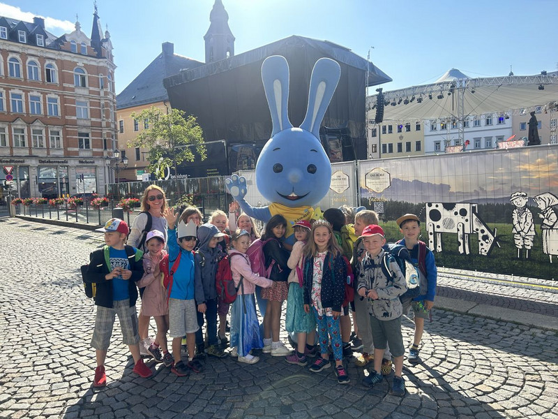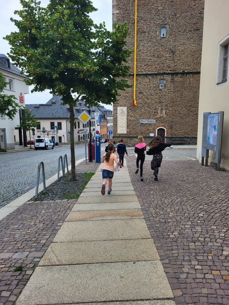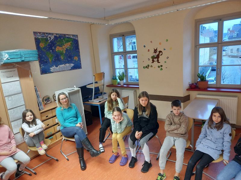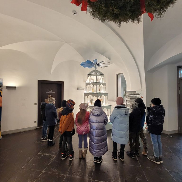 Heute waren die Klasse 4a/4b und die Religionskinder der Klasse 3a in Chemnitz. Dort konnten sich die Kinder die Neue Synagoge ansehen. Bei einer Führung haben sie viel zum Judentum, jüdischer Geschichte und zur jüdischen Tradition erfahren. Möglich war dies durch die Förderung durch das Landesprogramm "Weltoffenes Sachsen für Demokratie und Tolerenz" und durch die Stadt Annaberg.