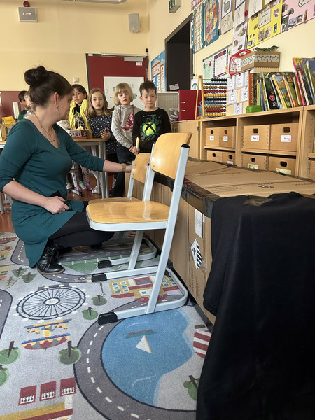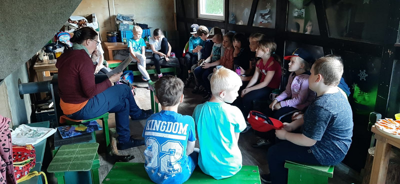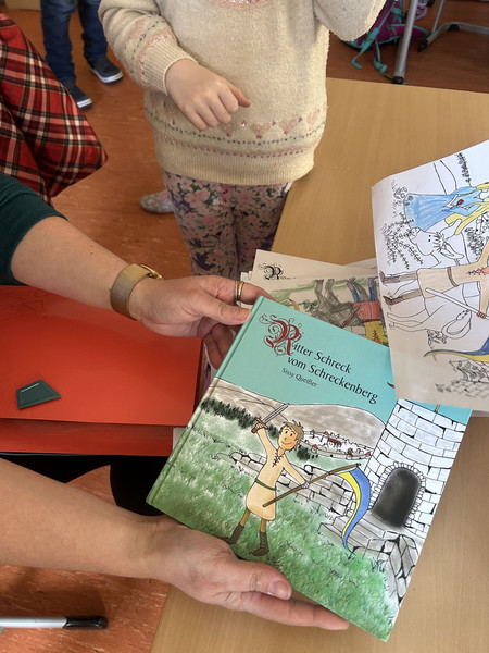 Kurz vor Ostern war Frau Queißer in den ersten und dritten Klassen zur Buchlesung eingeladen. Sie las uns vom Ritter Schreck vor und seinen Erlebnissen. Es wurde nebenbei gemalt und alle Kinder durften durch den "dunklen Stollen" kriechen und die Edelsteine zählen. Den Kindern hat es sehr gut gefallen.
