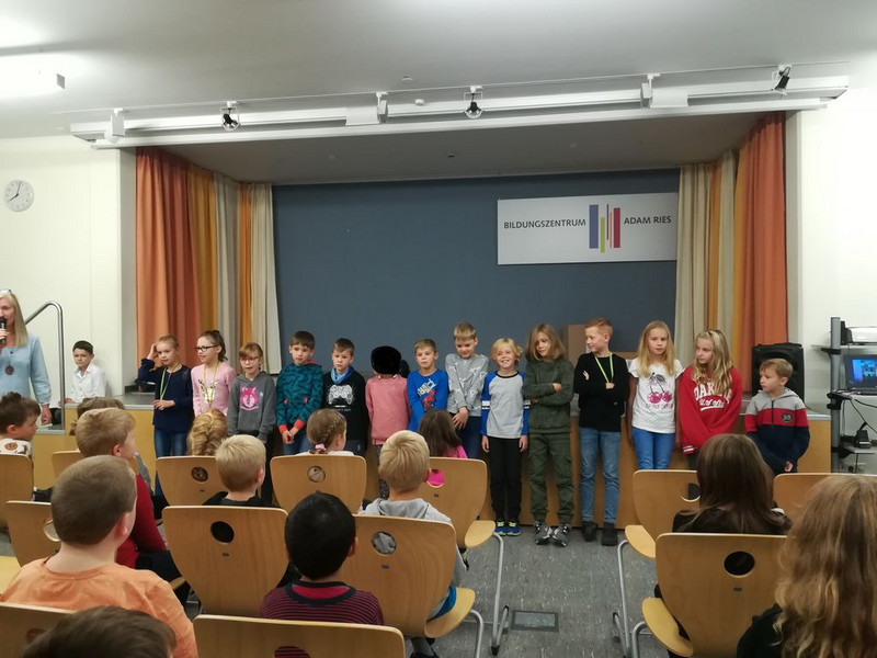 Am 11.10. lud die Klasse 4a zum Aulatreff. Neben einem Herbstlied und einem Herbstgedicht wurde den Teilnehmern des Kreisausscheides Crosslauf gedankt und unseren Geburtstagskindern gratuliert. Außerdem hatten die Mädchen einige Tik-Tok Tänze einstudiert und Frau Römer zeigte uns die gewonnenen Spiele. Die 4a wünschte allen noch eine schöne Woche und tolle Herbstferien!