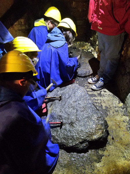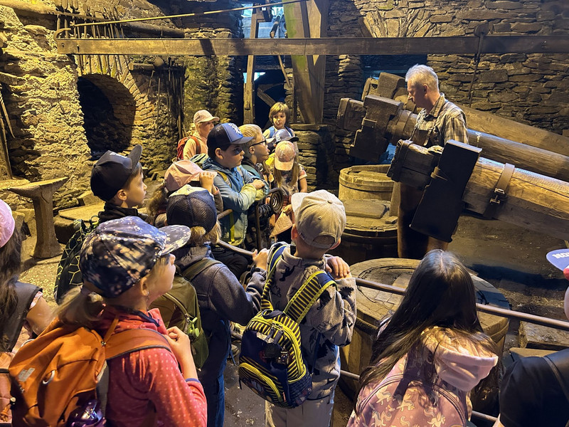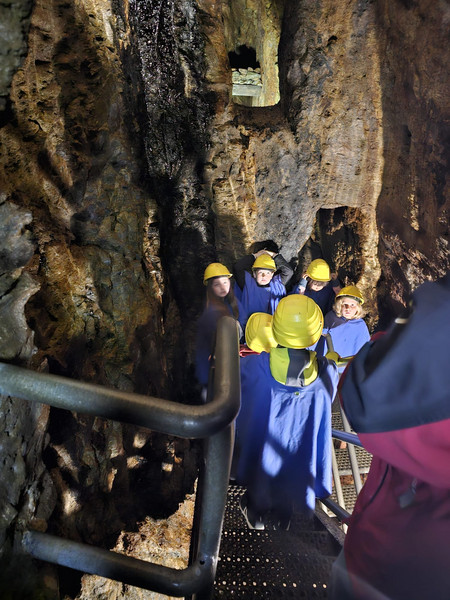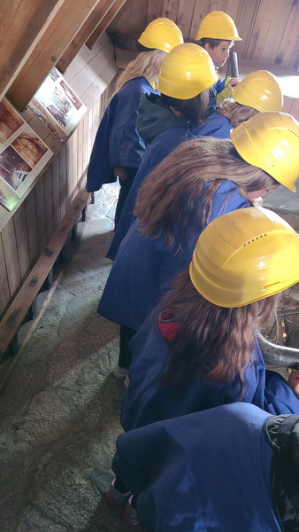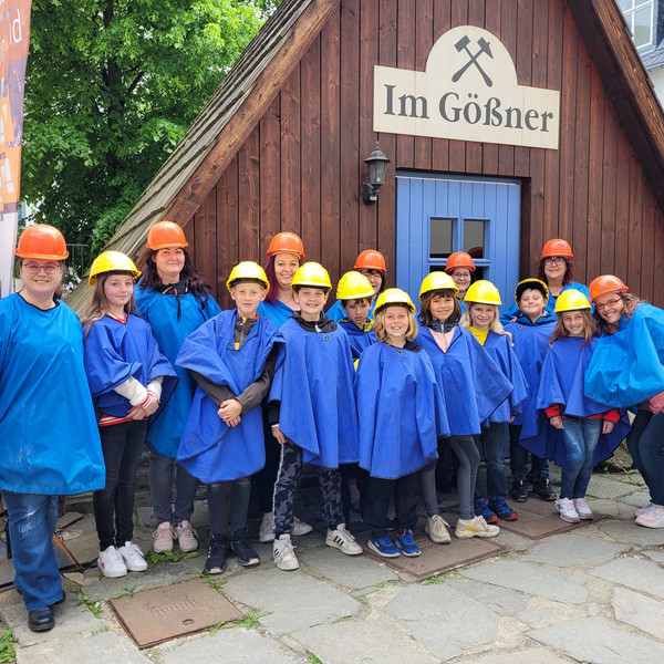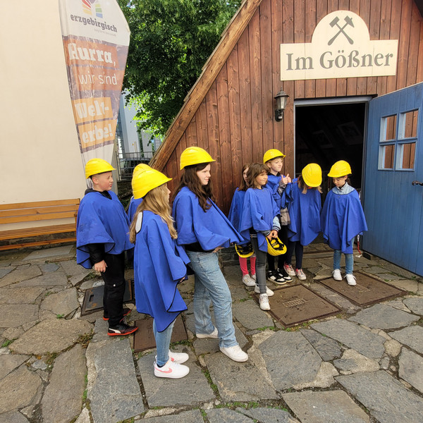 Am 22. Juni war es so weit, die 4. Klassen fuhren in den Gössner ein. Über einen historischen Kunstschacht gelangten die Kinder vom Erzgebirgsmuseum in Annaberg" über Treppen 13,5 bis 24 Meter in die Tiefe. Da dieses rund 500 Jahre alte Bergwerk erst 1995 wiedergefunden wurde, sind alte Erzgänge und Stollen noch in ihrer ursprünglichen Form erhalten geblieben und so erfährt man einen guten Einblick in den Silberbergbau des 15. und 16. Jahrhunderts." ( entnommen Website Erzgebirgsmuseum)