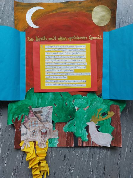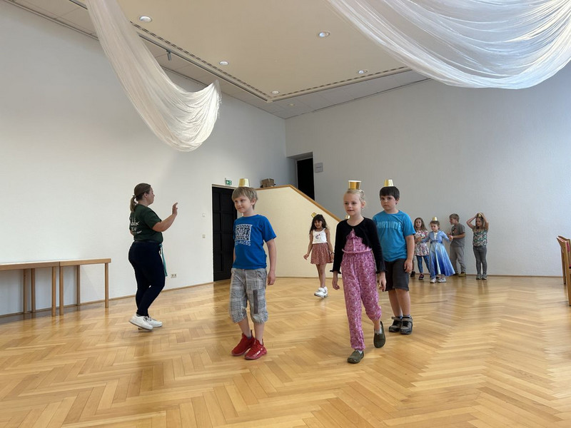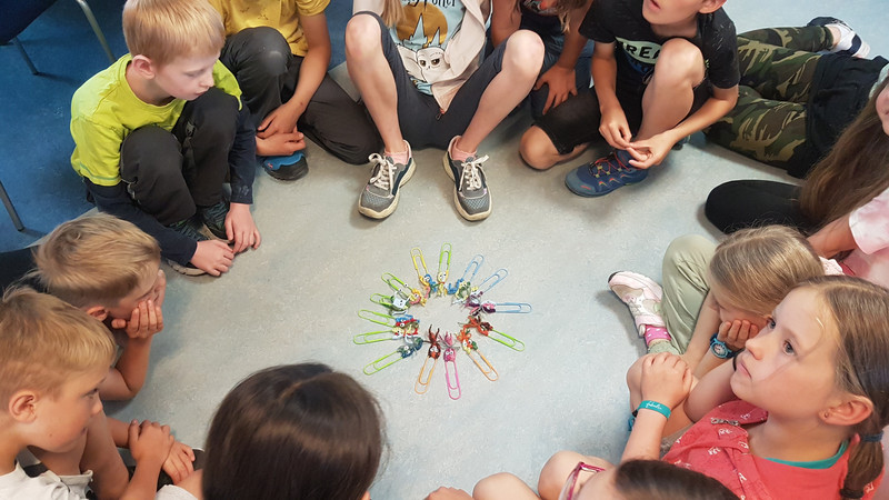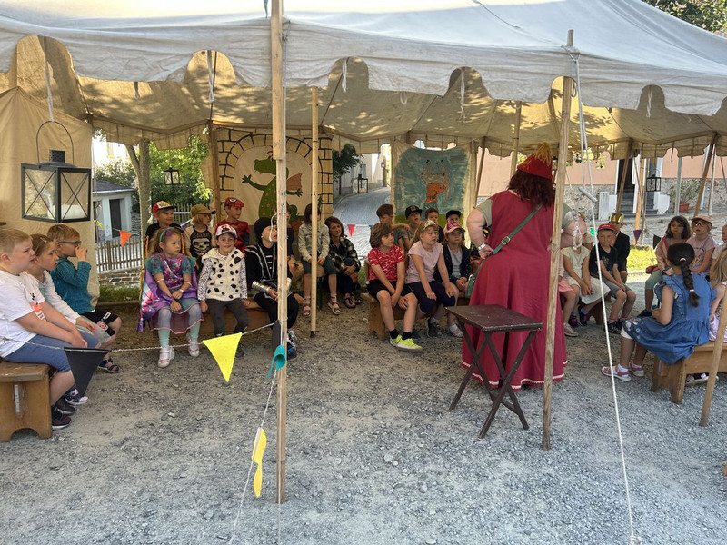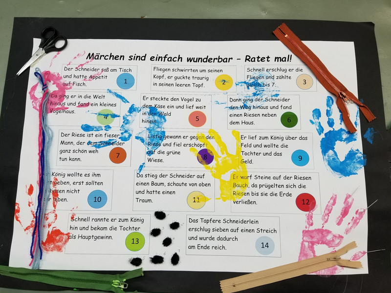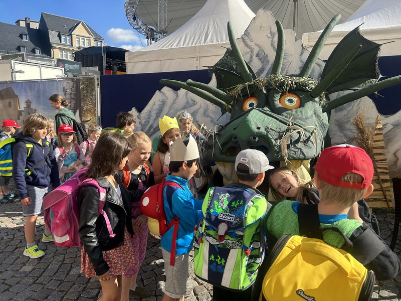 Diese Woche verwandelte sich Annaberg in eine große Märchenkulisse. Es herrschte reges Treiben und alle Klassen waren im Stadtgebiet unterwegs und besuchten verschiedene Veranstaltungen. Einige waren bei der Märchenerzählerin Fabulix, im Kino, an der Theaterbühne oder auf dem Marktplatz bei der Quizshow oder dem Sommerkonzert. Auch ein Diplom für Prinzen und Prinzessinnen konnte abgelegt werden. Auch wurden Kronen und Tiere aus Draht gebastelt. Und jeder durfte sein eigenes Feen- oder Trolllesezeichen anfertigen.