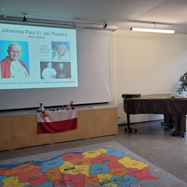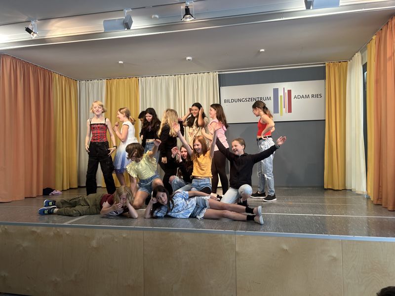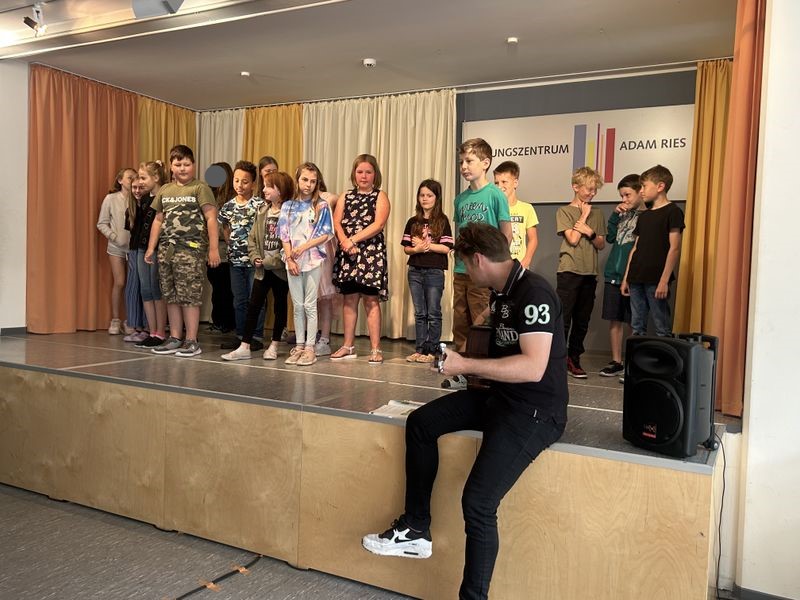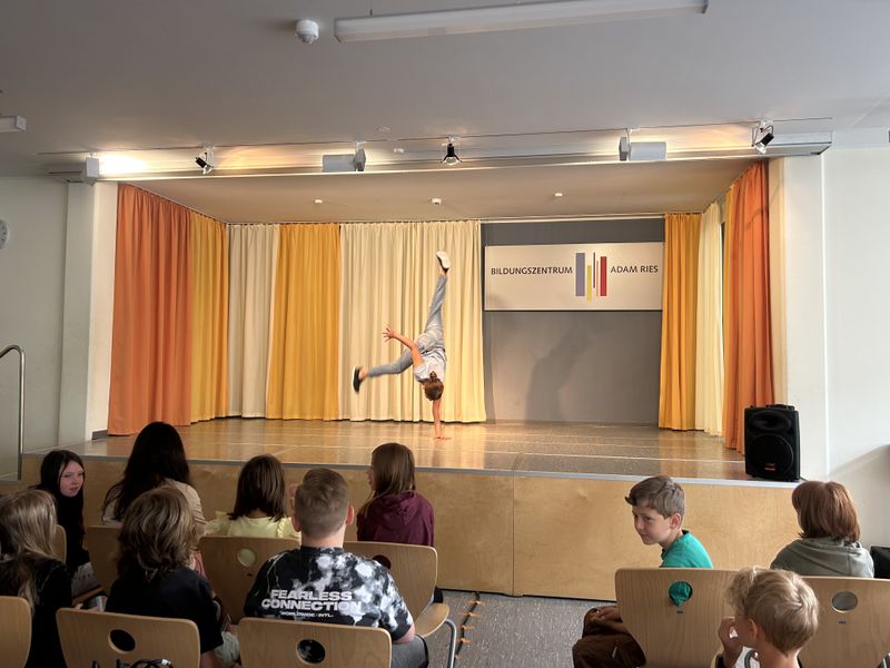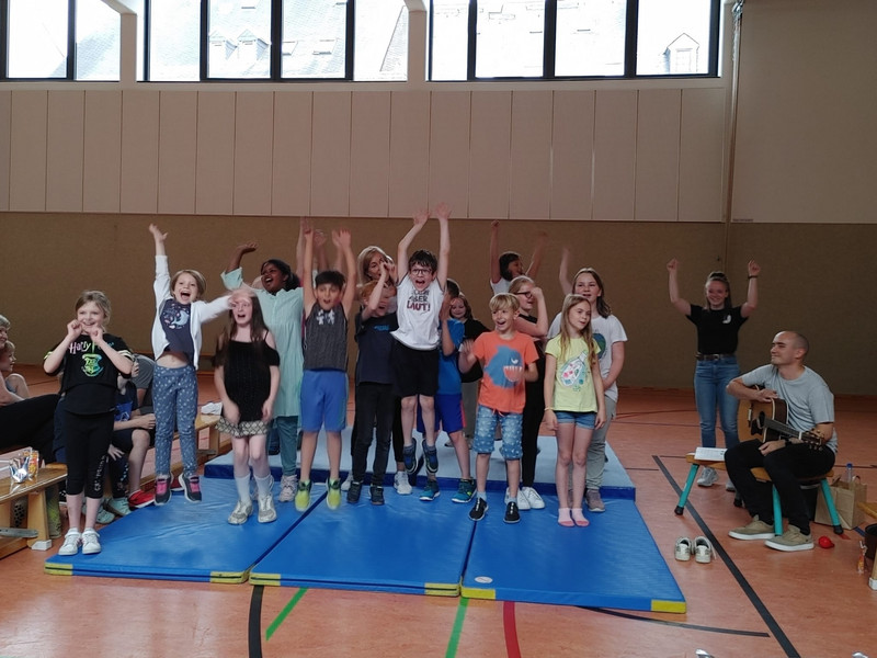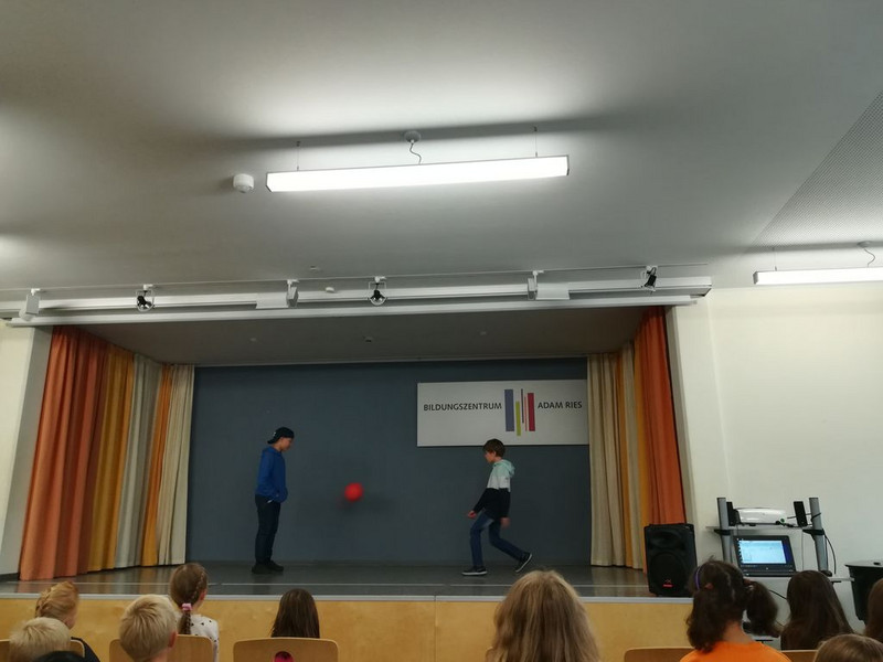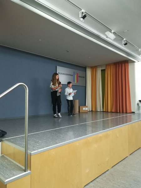 Den Aulatreff im Mai begann die verantwortliche Klasse 1a mit einem Lied, später hörten wir noch das Gedicht von den besonderen "Kätzchen", sahen einen Zaubertrick und einen Tanz. Da auch wieder einige Wettkämpfe anstanden, wurde auch noch einmal den Teilnehmern der Hallenkreismeisterschaft Athletik und des Kreisausscheides 2-Felderball für ihren Einsatz gedankt. Außerdem wurden die Platzierten des Lesewettbewerbs bekannt gegeben, wir hörten einen selbstgemachten Podcast vom Osterprojekt und gratulierten unseren Geburtstagskindern. Happy Birthday!
