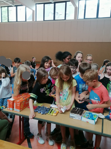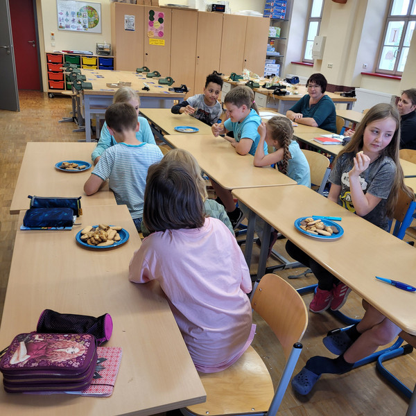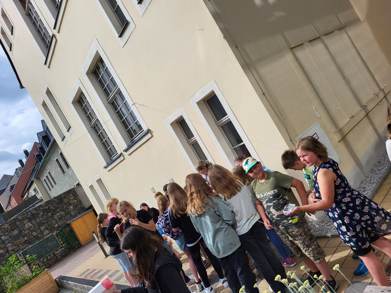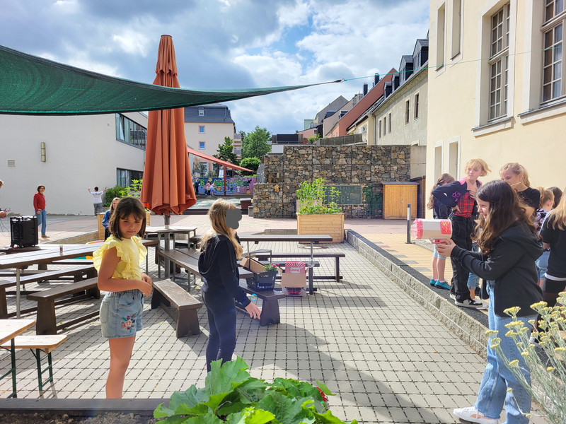 Am 27. Juni trafen sich die Klassensprecher das letzte Mal in diesem Schuljahr mit Frau Lindenborn. Es wurde über gute und negative Sachen diskutiert, geschimpft und gelobt. Alle Kinder bastelten einen Kreisel als Symbol der weiteren Entwicklung, viele Kekse wurden gegessen und Frau Rothe und Frau Grieger einbezogen. Außerdem wurde der Mensa, den Erzieherinnen, den Lehrkräften und Assistenzen mit von der Schulgarten AG hergestellten Samenbomben gedankt.