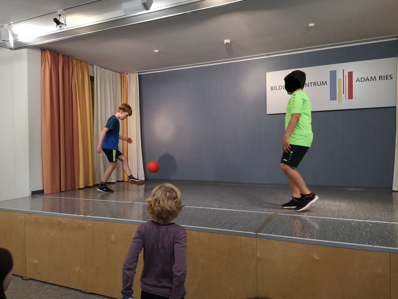 Zum Aulatreff im September hatte die Klasse 4b sich wieder besonders vorbereitet. Es wurde von "Freiheit" gesungen, getanzt und Fußballtalente durften ihr Können zeigen.Außerdem dankte Frau Lindenborn unserem fleißigen Reinigungspersonal und stellte Frau Grund als unsere neue Werkenlehrerin, sowie Herrn Fröhner und Frau Siegert als Praktikanten vor. Auch unseren vielen Geburtstagskindern wurde herzlich mit einem Lied gratuliert. Alles Gute für euch!